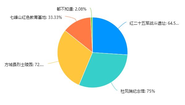 本次调查以网上填写电子问卷的方式进行,有效填写人次共96人次,被调查者为当地居民,由下图数据可以看出,受访者以青少年为主,政治面貌大部分为群众,少数为共青团员,党员和预备党员占极少数。本次问卷调查主要反映方城县居民对于本县以红二十五军独树镇战斗遗址为主的红色文化的了解情况以及他们对弘扬方城县红色文化的建议,对于今后景区文化宣传创新、文化建设具有指导性意义,也为全国地方性红色革命景区的发展提供了模板和建议。