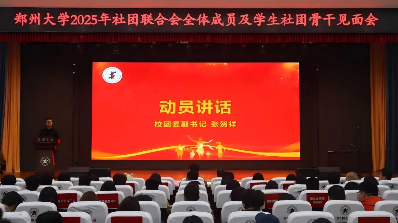 为促进学生社团在新学期焕发生机,凝心聚力,开拓新局,10月29日,郑州大学社团联合会2025年全体成员及学生社团骨干见面会在大学生活动中心三楼报告厅召开。校团委副书记张贺祥出席会议,参加会议的还有社团联合会全体成员、各学生社团主要负责人。
