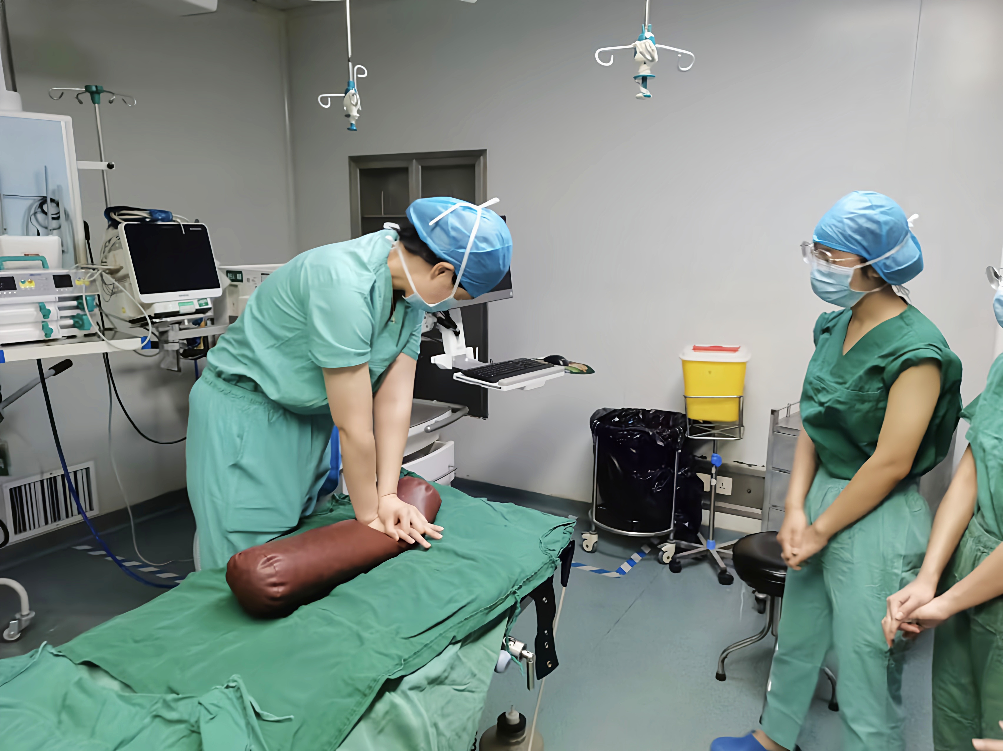 图为县医院王焕丽老师在演示心肺复苏步骤。中国青年网通讯员 刘祎 供图