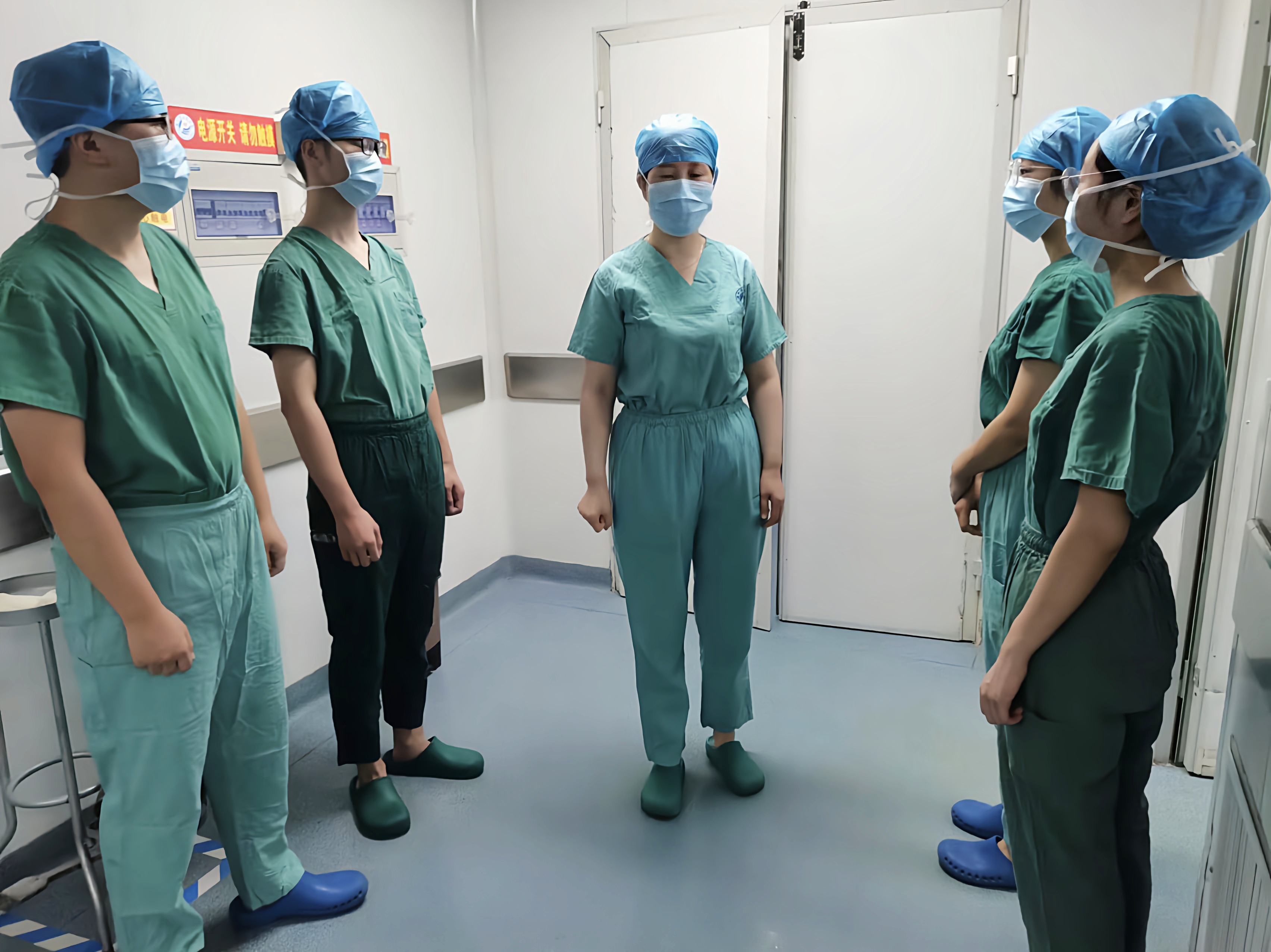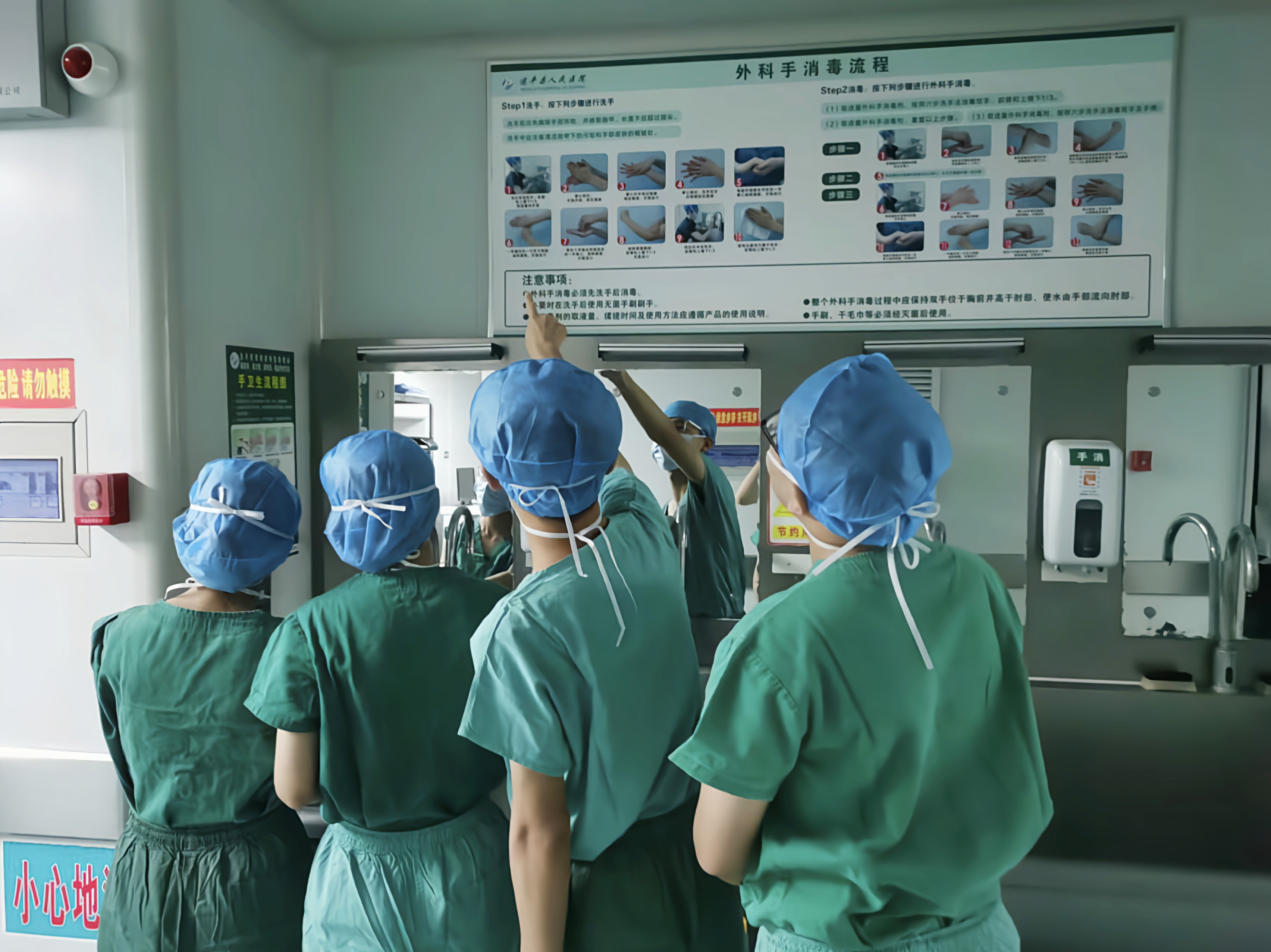 图为县医院王焕丽老师在为实践成员讲解进入手术室的注意事项。中国青年网通讯员 刘祎 供图