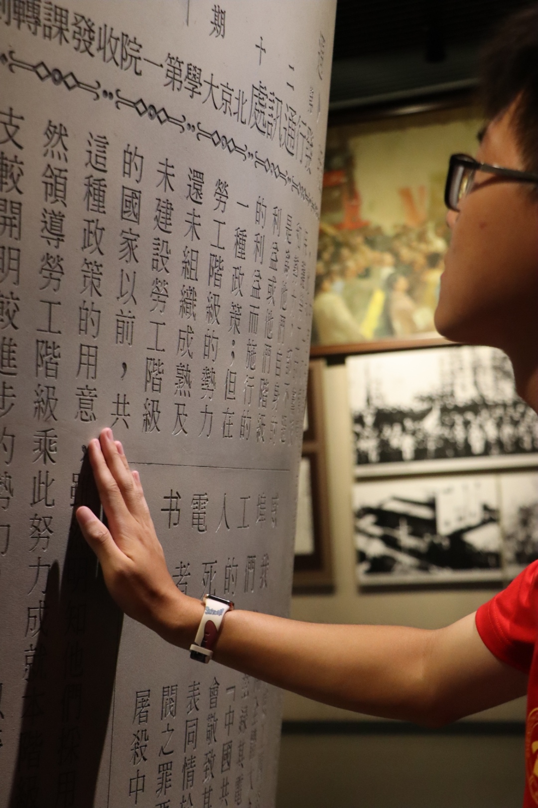 28日上午,实践团队到达二七纪念馆,开始参观和感受这座饱含革命气息,有血有肉的纪念馆。序厅、溯源、觉醒、共生、印象、纪录、淬炼、焕新、瞻远、珍藏等十大展厅一一呈现,各种历史文物、珍贵照片与视频不断交织,在一步一行中,实践团队更加清晰了解到革命先烈们的光辉事迹。