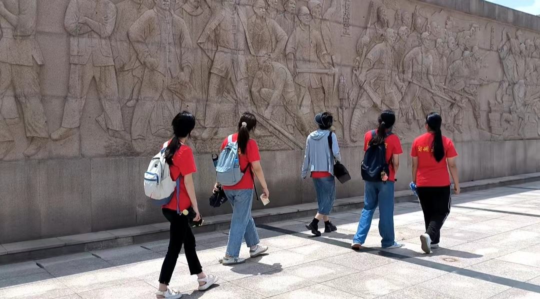 在郑州烈士陵园,实践团队向革命先烈纪念碑致敬。走过长长的浮雕影壁墙,在一片沉默中,实践队员们缅怀革命先烈。追思不必诉诸于口,一切尽在不言中。在感受革命烈士炽热滚烫的家国情怀的同时,实践队员们也更加坚定了自己勇担时代重任、投身民族复兴的信念。