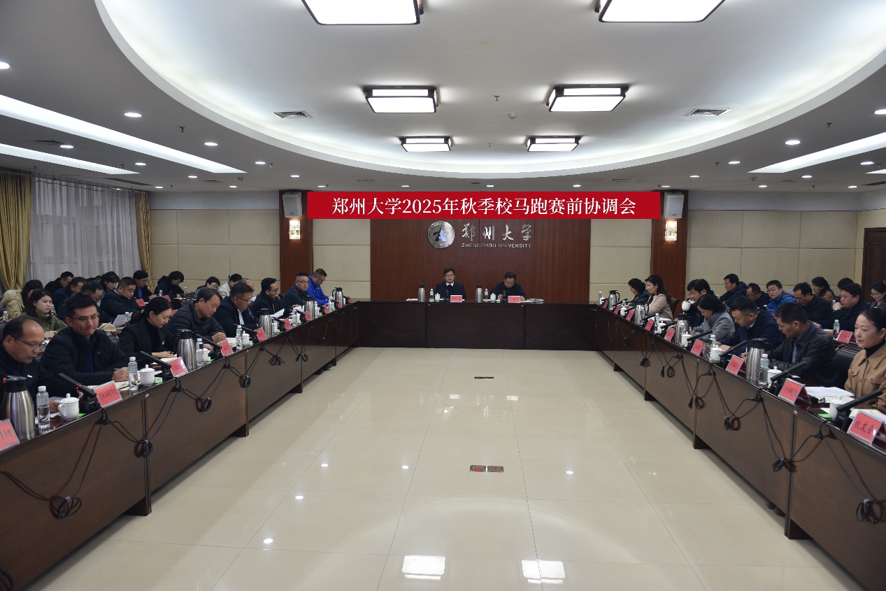 2025年10月24日,郑州大学2025年秋季校马跑赛前协调会在综合管理中心第四会议室顺利召开。校党委副书记王利国,党委常委、副校长徐东升,河南省田径协会会长刘斌,学校相关职能部门、各院系相关负责同志参加会议。运动与体育学院党委书记李娜主持会议。