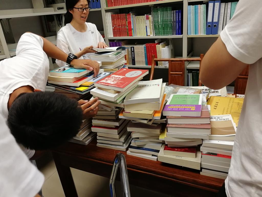 学校图书馆整理校友捐赠书籍