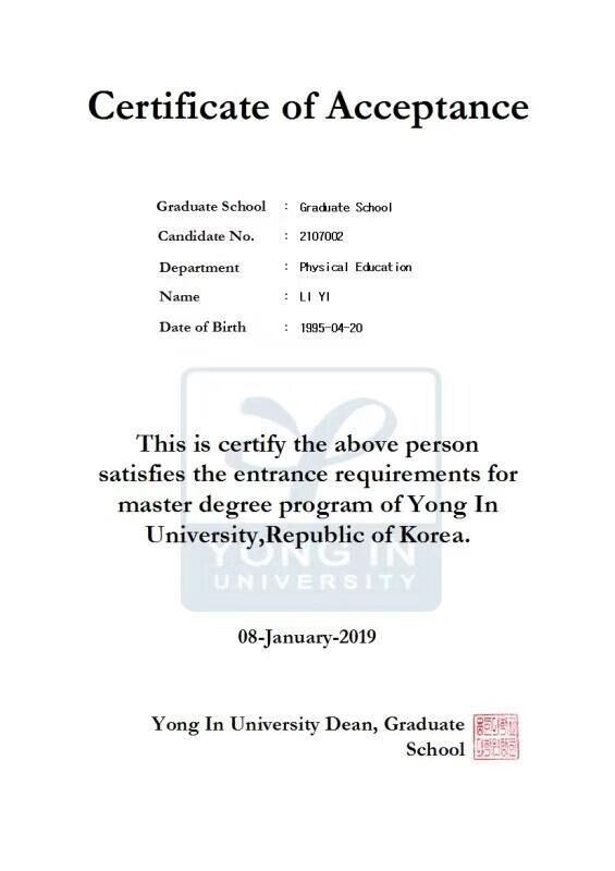 李根是我院2014级体育教育专业2班本科生,李毅是我院2014级社会体育指导与管理1班本科生,考取韩国龙仁大学2019级体育教育学硕士,他们将于2019年3月入学。