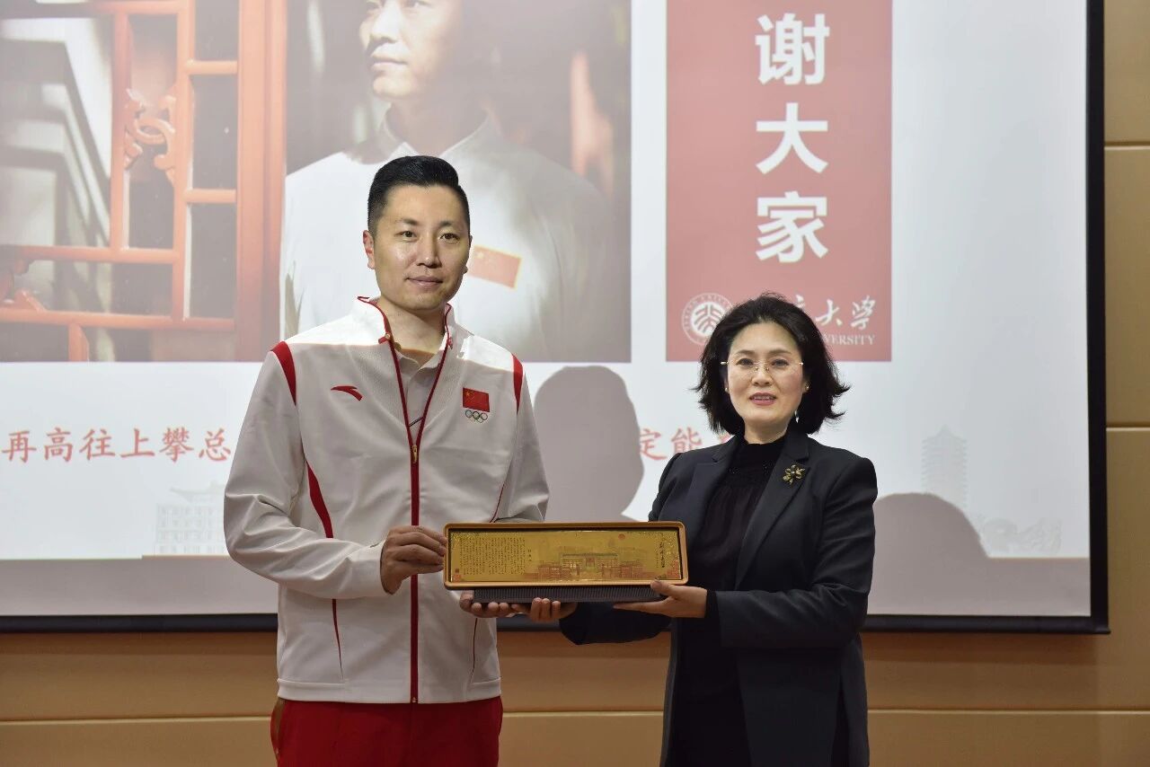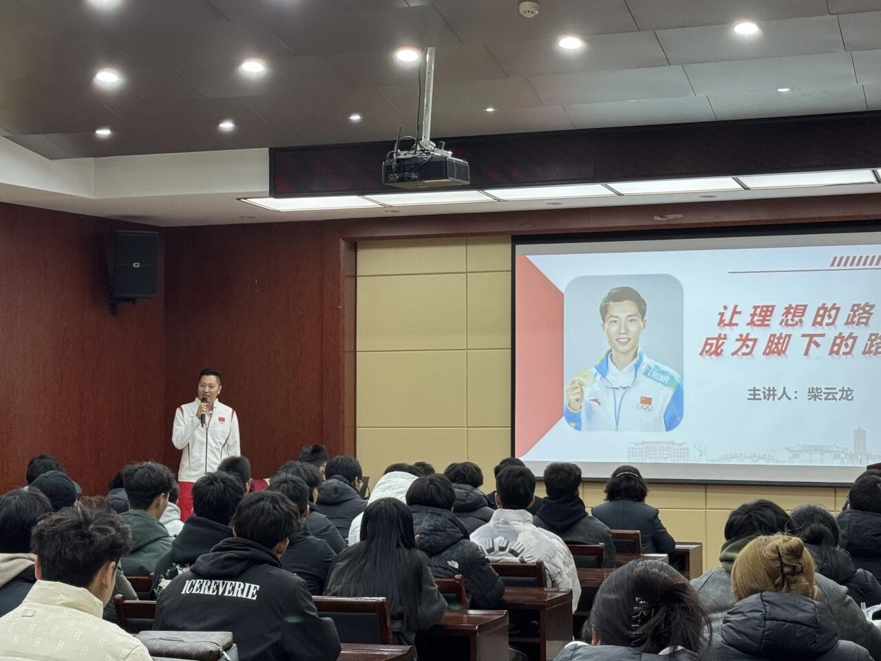 柴云龙以《让理想的路成为脚下的路》为题进行讲授。他以太极文化为核心,深入阐述了太极拳中见初心,指出太极拳刚柔并济恰如党员应秉持的坚韧与灵活,面对难题要刚正坚守原则,处理事务应柔和协调矛盾。当谈及自身运动生涯时,从河南焦作的武术启蒙,历经体校、省队、国家队的层层磨砺,到赛场争金夺银,其间伤病困扰、赛事起伏,皆化作件件生动案例,诠释坚持初心、砥砺奋进的重要内涵。他希望当代大学生以专长回馈社会、助力国家文化兴盛,投身公益事业,以实际行动诠释党员的价值追求,为党和人民事业添砖加瓦。在探讨太极拳文化的传播之道时,柴云龙剖析其内涵精髓,细致阐述了太极拳在健身养生、竞赛表演以及防身自卫等多个维度上的分类要义与文化价值。他通过组织公益活动将太极拳这一国粹带入大众的日常生活,尤其是在贫困地区群众与特殊群体中,送去身心的关怀与慰藉,搭建起文化传承与社会公益之间的坚实桥梁。在国际交流的广阔舞台上,柴老师积极利用赛事、文化交流等形式,充分展示太极拳的独特魅力。在场师生通过此次课程,深刻认识到体育文化在构建国家文化软实力方面的重要作用,激起弘扬民族文化的责任感与使命感。
