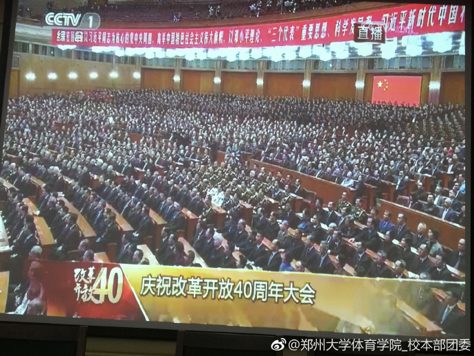 2018年12月18日上午10时,院党委组织师生代表收看“庆祝改革开四十周年大会”。校体委副主任林克明,院领导班子武东晓、卢振华、赵子建和教师代表,硕士研究生代表和本科生代表共110余人参加。