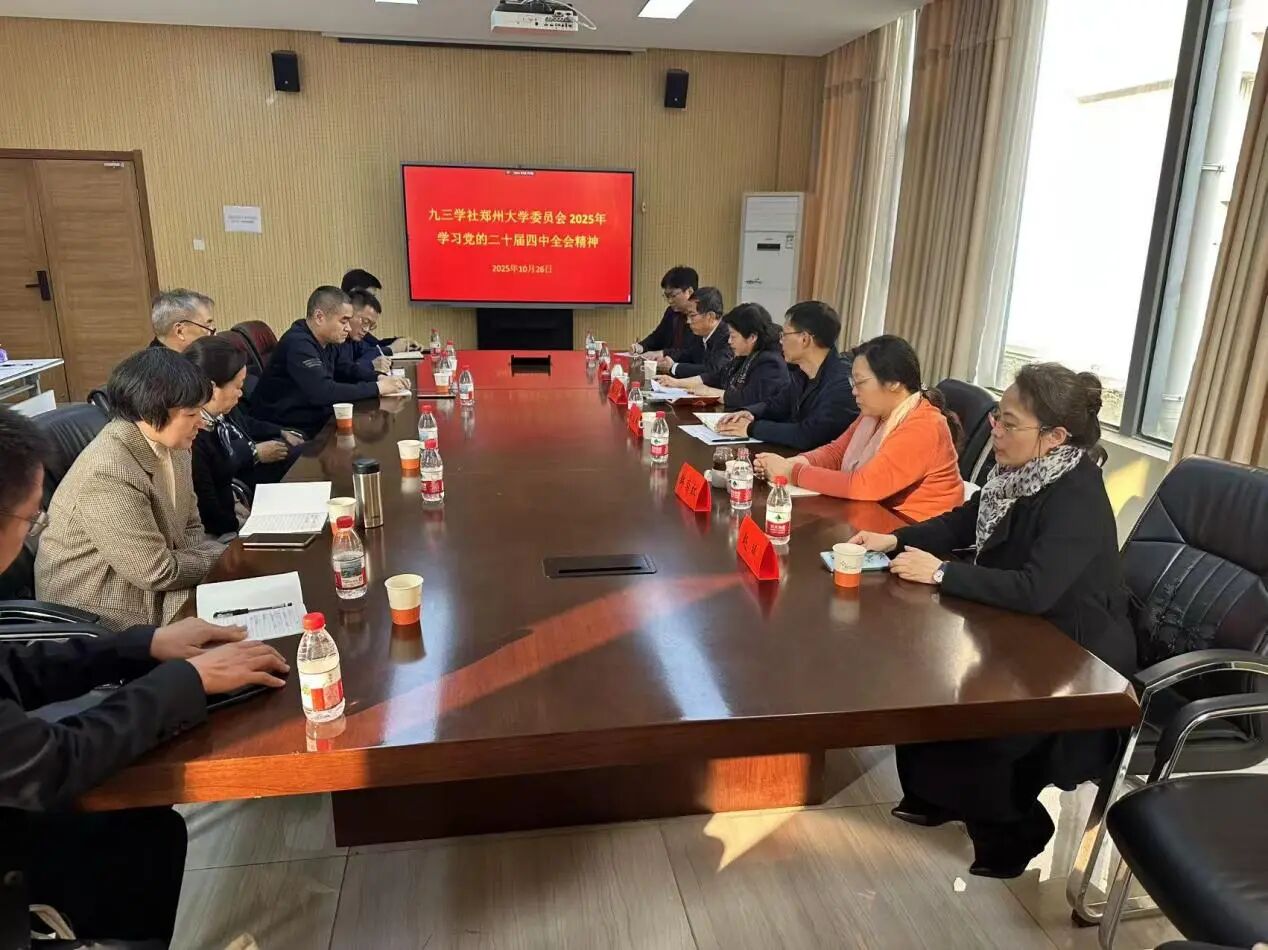 10月26日,九三学社郑州大学委员会召开专题学习会议,深入传达学习党的二十届四中全会精神。会议由委员会主委魏小杰主持,领导班子、各支社负责人、骨干社员、新社员代表共20余人参加。