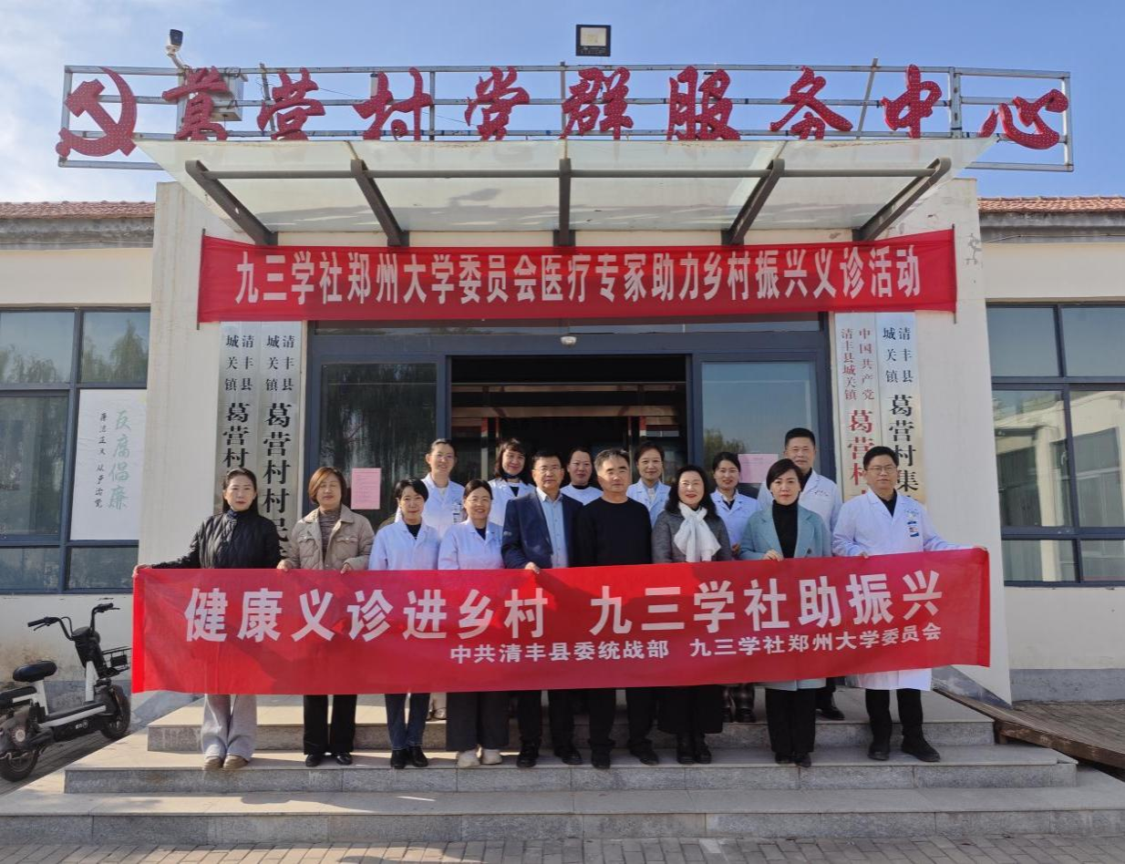 11月22日,在九三学社河南省委会、郑州大学党委统战部的领导与支持下,九三学社郑州大学委员会组建由副主委杨道科、刘学军带队的多学科医疗专家团队,赴濮阳市清丰县开展“医疗帮扶签约+乡村健康义诊”系列活动,以“传帮带”赋能基层医疗,用仁心仁术服务乡村百姓,为健康中国建设与乡村振兴注入动能。