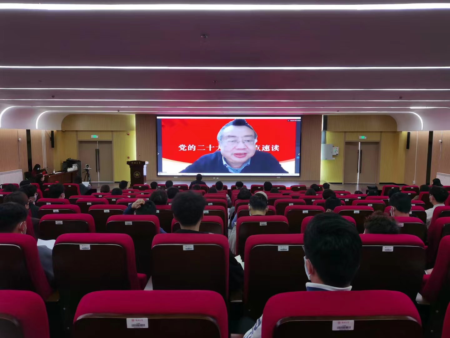 屈凌波以《深刻学习领会二十大新党章 做新时代的先锋战士》为主题进行了专题授课,通过解读党的二十大报告要点,阐释新修订的《中国共产党章程》,帮助全体党员干部师生、入党积极分子、发展对象进一步深化对党的二十大报告的认识,进一步增进对党的路线方针政策以及党的基本知识的了解,进一步加深对习近平新时代中国特色社会主义思想、马克思主义中国化时代化、中国式现代化等重大理论和实践问题的理解。他指出,党章是党的根本大法,修改党章事关战略全局,事关人民福祉,事关复兴伟业。新时代青年必须深刻认识到修改党章的重要意义,必须认真读原文、悟原理,全面把握党章修改的重要内容,加深对党的认识,自觉领悟党的二十大提出的新思想新论断、新部署新要求,切实把思想和行动统一起来,提升党性觉悟和政治境界。他希望青年学子要按照党章的要求,做新时代的先锋战士,在新的征程中,在建设中国式现代化的过程中,在实现伟大民族复兴的过程中建功立业,贡献青春力量,不辜负共产党员的光荣身份,不辜负我们所处 的伟大时代。