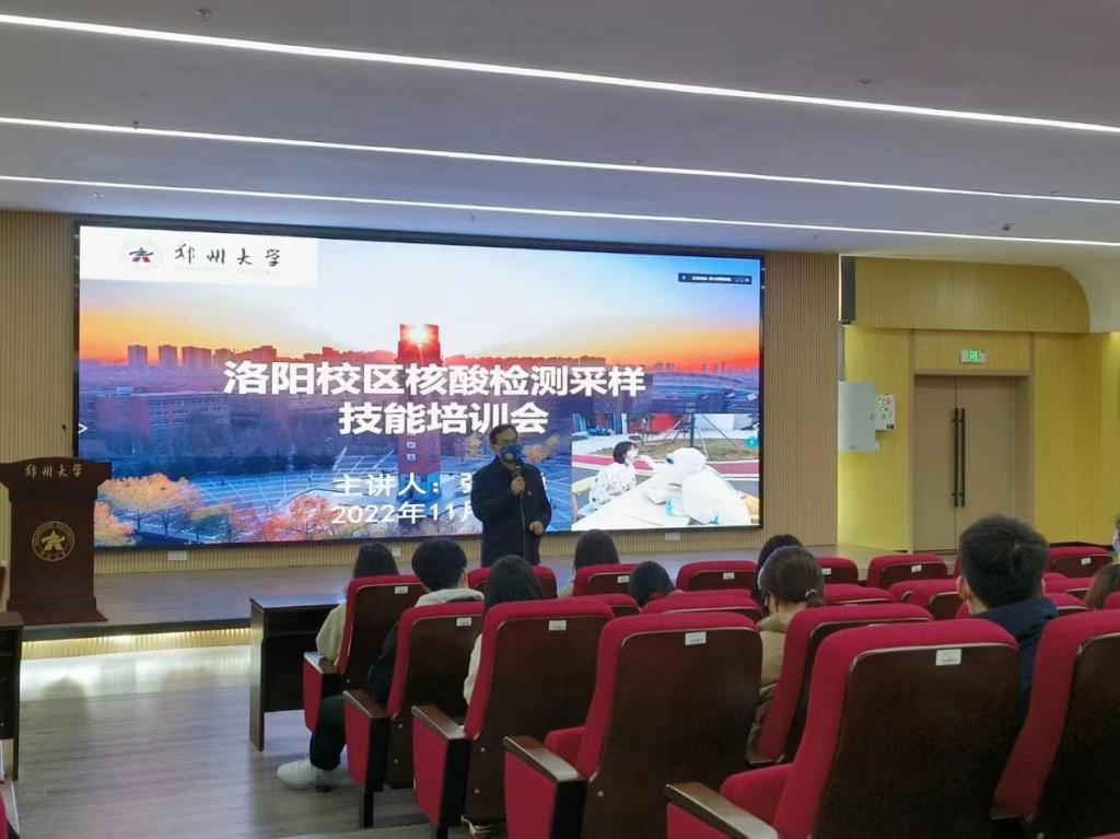 为不断提升校区疫情防控应急处置能力,有效防范和积极应对可能出现的疫情,进一步做好校区核酸采样人员储备建设,11月21日,洛阳校区组织开展核酸采样技能培训会。附属洛阳中心医院血液内科一病区护士长张艳艳通过视频,为大家作核酸检测采样专题培训,洛阳校区相关负责人、全体教职工和疫情防护志愿者参加了培训。