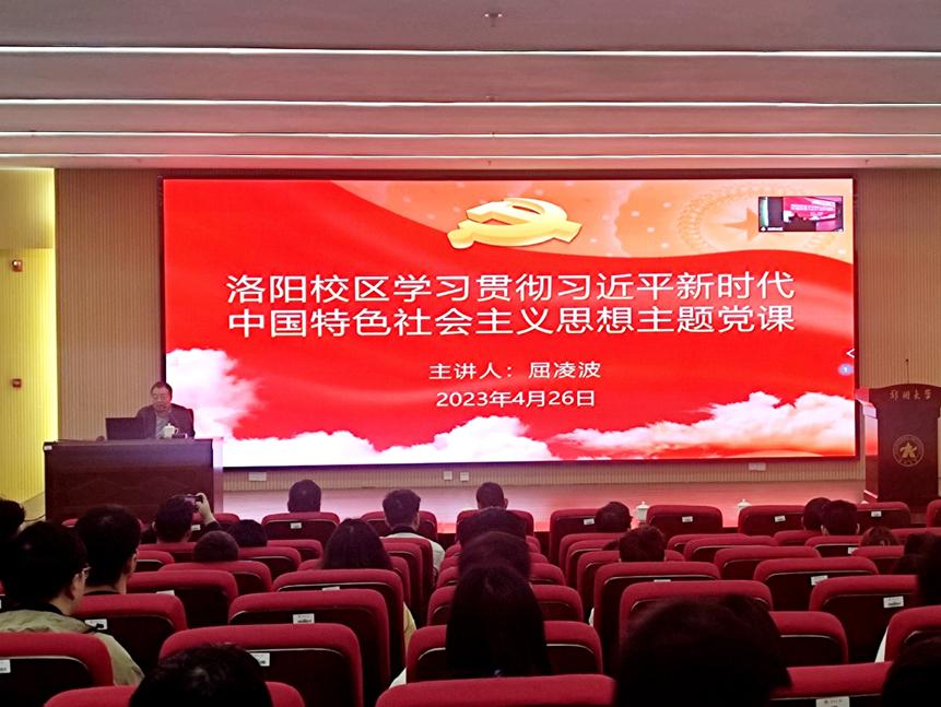 为深入推进学习贯彻习近平新时代中国特色社会主义思想主题教育,加深校区党员干部对习近平经济思想丰富内涵的理解和把握。4月26日,郑州大学党委常委、副校长、洛阳校区党委书记屈凌波以《深入学习贯彻习近平经济思想,切实推动更高质量发展》为题,为校区师生讲授学习贯彻习近平新时代中国特色社会主义思想主题教育专题党课。本次专题党课采用线上线下相结合的方式,校区全体师生党员、入党积极分子聆听了讲座。