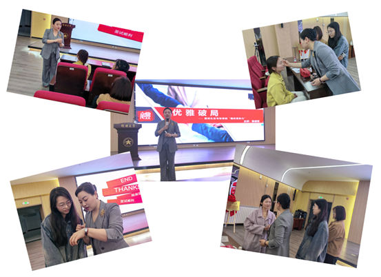 本次讲座主要从面试着装、仪态、沟通、美妆等四个方面展开讲解。