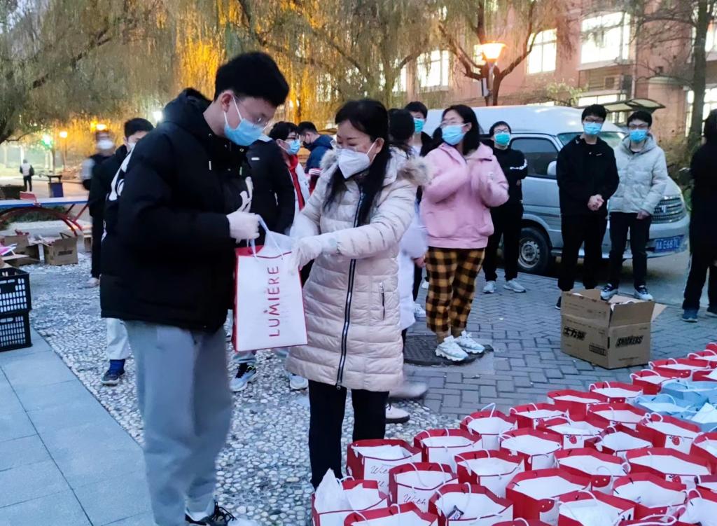 老师们逐一将大礼包发给考研同学们,叮嘱他们调节好心情,注意保暖,以最好的状态迎接考试。“向考研同学送大礼包的活动已经连续开展了多年,是学院的一项传统,也是考研学子共同的珍贵回忆。”学院党委副书记王汇说,“希望同学们从这一份份精心准备的礼物中,感受到学院对他们的满满关爱和美好祝愿,期待同学们成功上岸的好消息。”