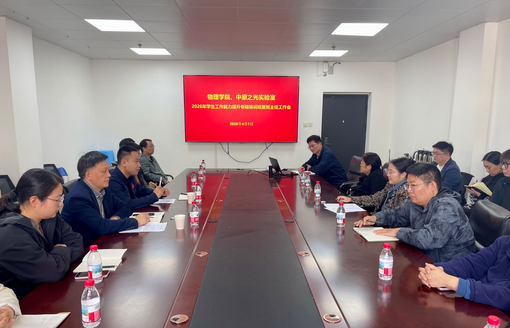4月1日上午,我院于物理A楼228会议室召开2026年学生工作能力提升专题培训班暨班主任工作会。学院党委书记郑研、党委副书记王逸楠出席,全体本科生辅导员、班主任参会,会议由王逸楠主持。