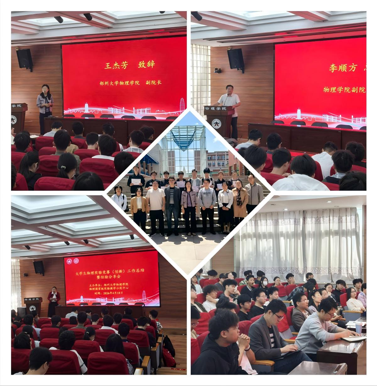 为全面总结竞赛成果,分享备赛与参赛经验,进一步提升我校学生物理实验能力与创新实践水平,2026年4月18日,郑州大学物理学院物理国家级实验教学示范中心在主校区物理学院B楼107报告厅成功举办了大学生物理实验竞赛(创新)工作总结暨经验分享会。