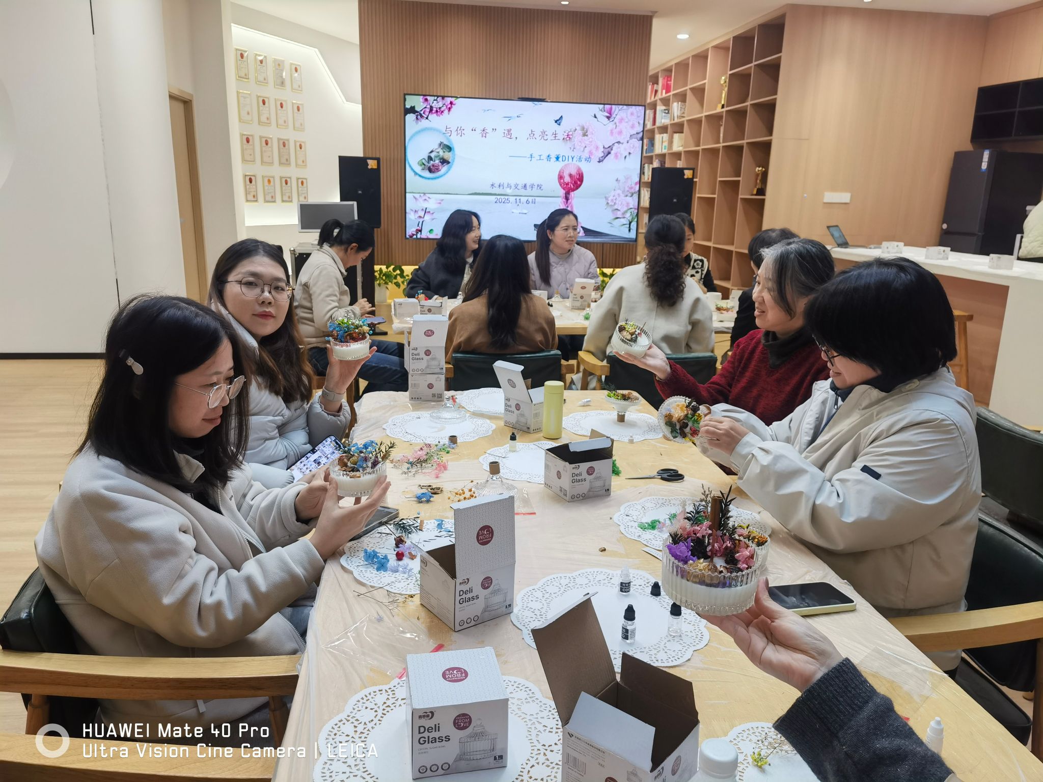 近日,一场主题为“与你‘香’遇,点亮生活”的手工香薰DIY活动在水利与交通学院工会之前举行。本次活动由学院女工委员会精心组织,旨在丰富女教职工的业余文化生活,缓解工作压力,在芬芳氛围中提升审美情趣与生活品质。
