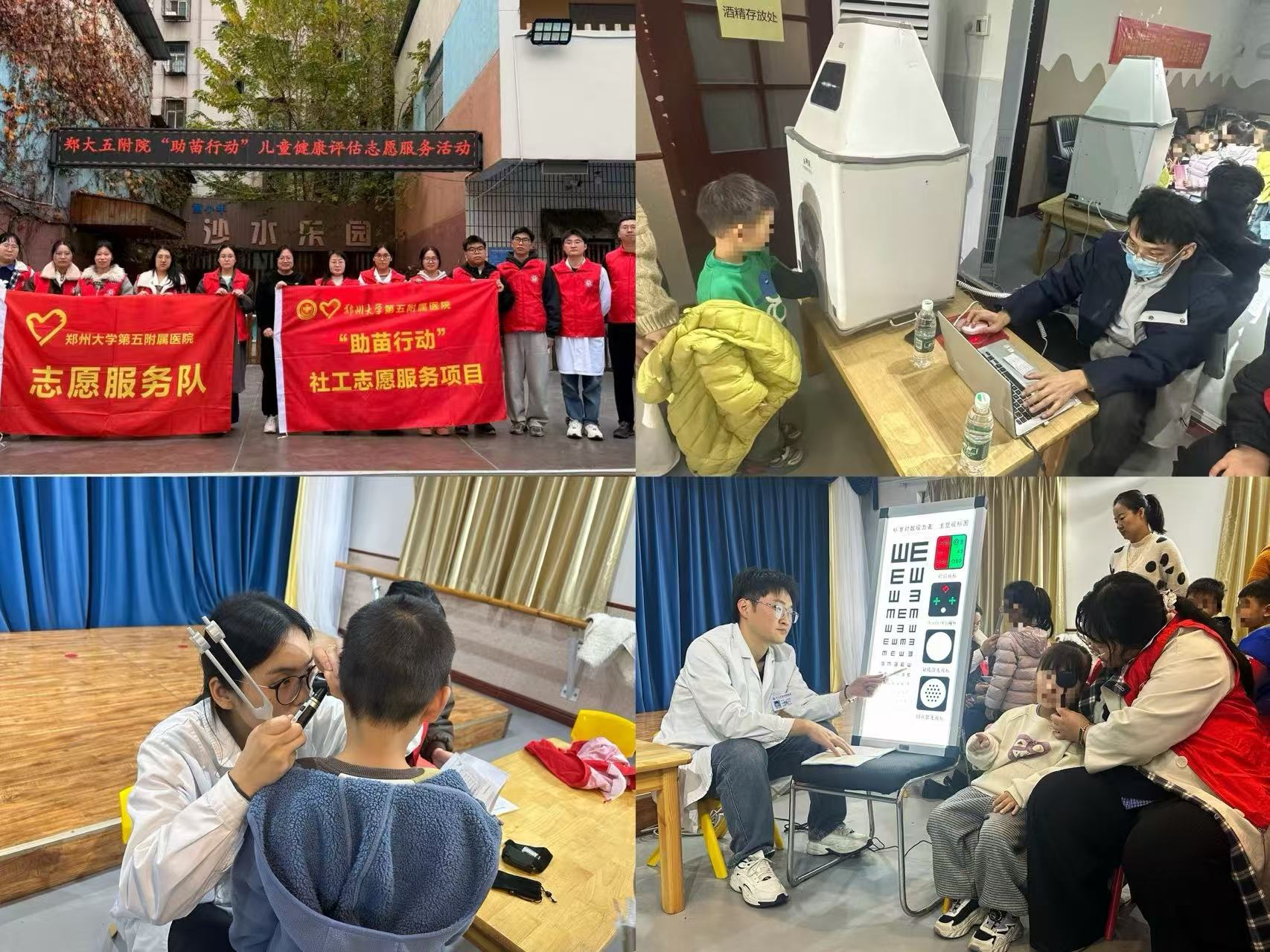 为关爱儿童健康成长,践行社会责任,郑州大学五附院团委联合工会女工委组织社工志愿服务队于11月12日赴二七区童年时光幼儿园开展 “助苗行动”儿童健康评估主题活动。此次活动旨在通过专业的健康筛查,发现早期潜在健康问题,为幼儿的健康成长提供科学指导,共计为幼儿园400余名在园儿童提供了全面、细致的健康检查。