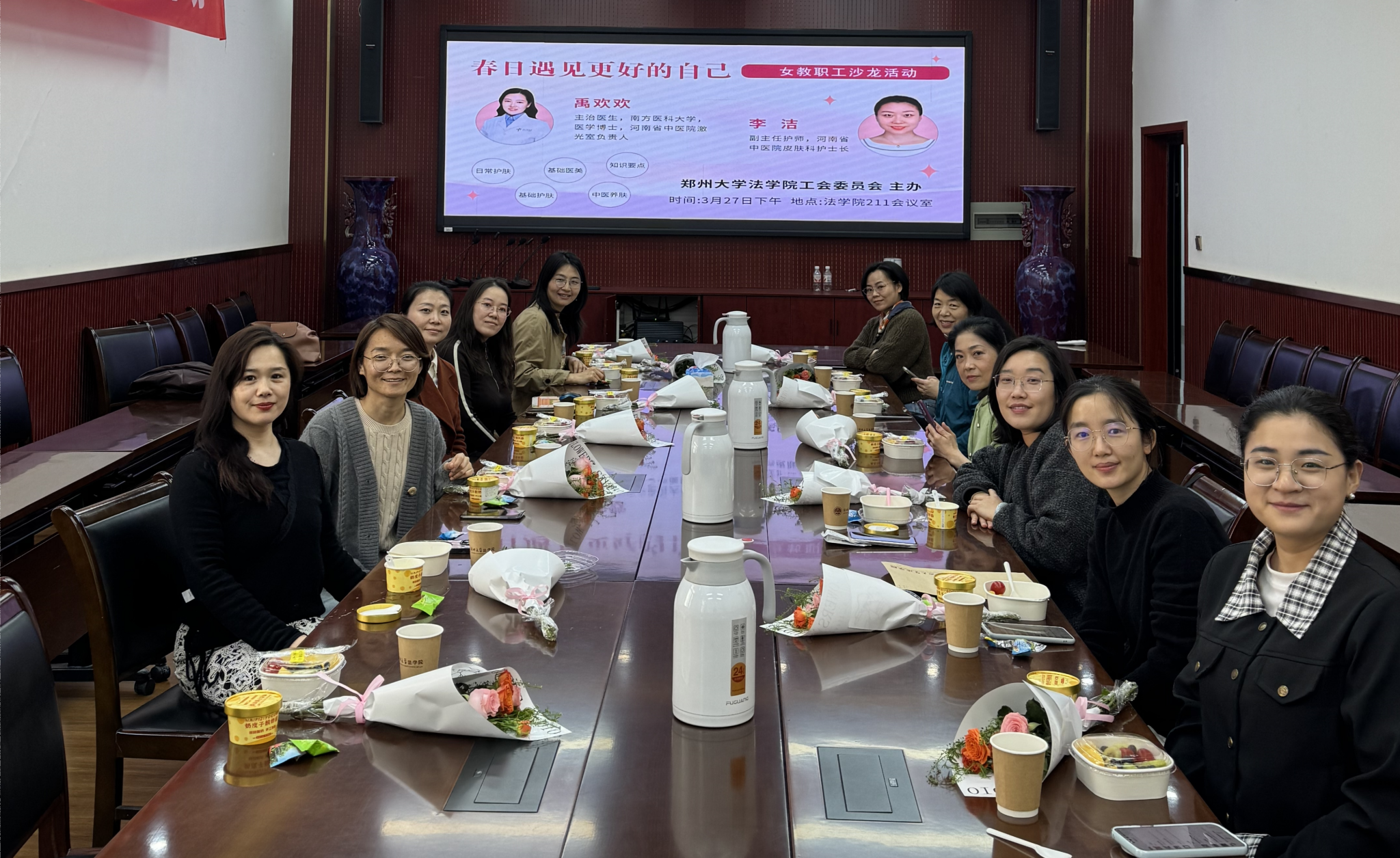 为关爱法学院女教职工身心健康,提升职业女性形象与生活品质,3月27日下午,郑州大学法学院工会委员会、郑州大学法学院女工委员会在法学院211会议室举办了“春日遇见更好的自己”女教职工职业形象讲座。