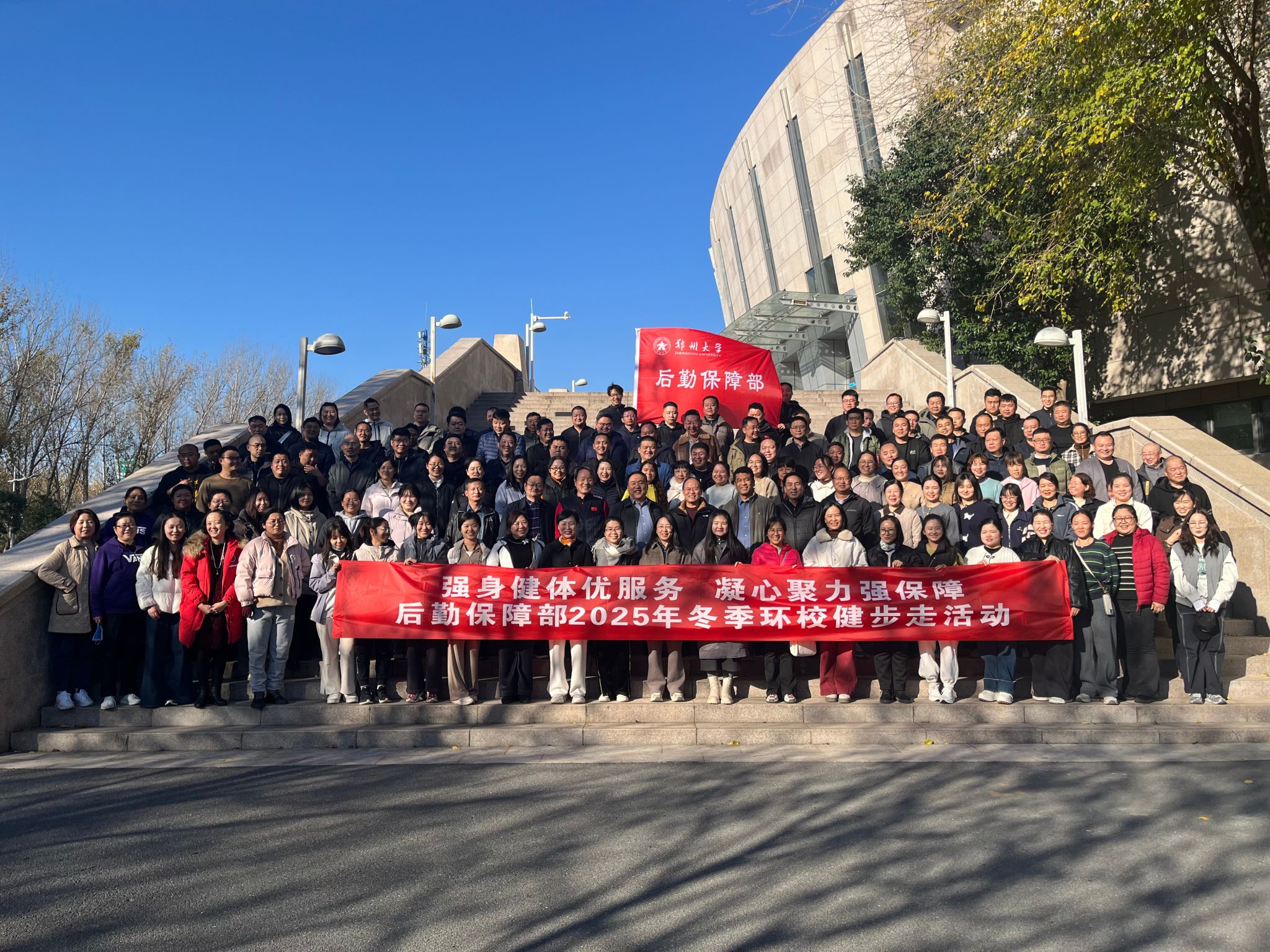 为丰富职工文化生活,凝聚后勤发展合力,11月21日下午,后勤保障部以“强身健体优服务 凝心聚力强保障”为主题,开展2025年冬季环校健步走活动,160余名职工参加。