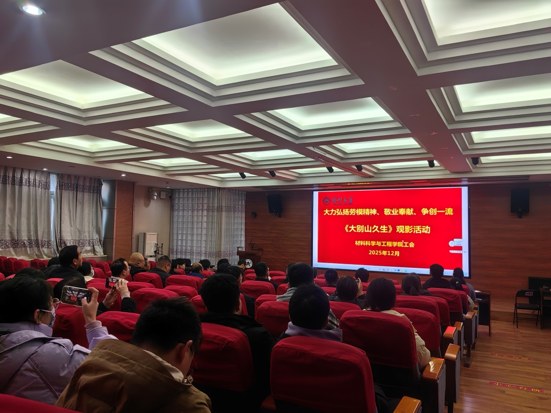 近日,为积极响应河南省总工会下发的《关于认真组织观看电影<大别山久生>的通知》,10月3日,材料学院工会组织了一场以“大力弘扬劳模精神、敬业奉献、争创一流”为主题的观影活动,学院30余位教师代表集中观看了以全国劳动模范、全国道德模范、全国优秀共产党员、潢川县双柳树镇驻郑州农民工党支部书记黄久生同志真实事迹为原型创作的电影《大别山久生》。