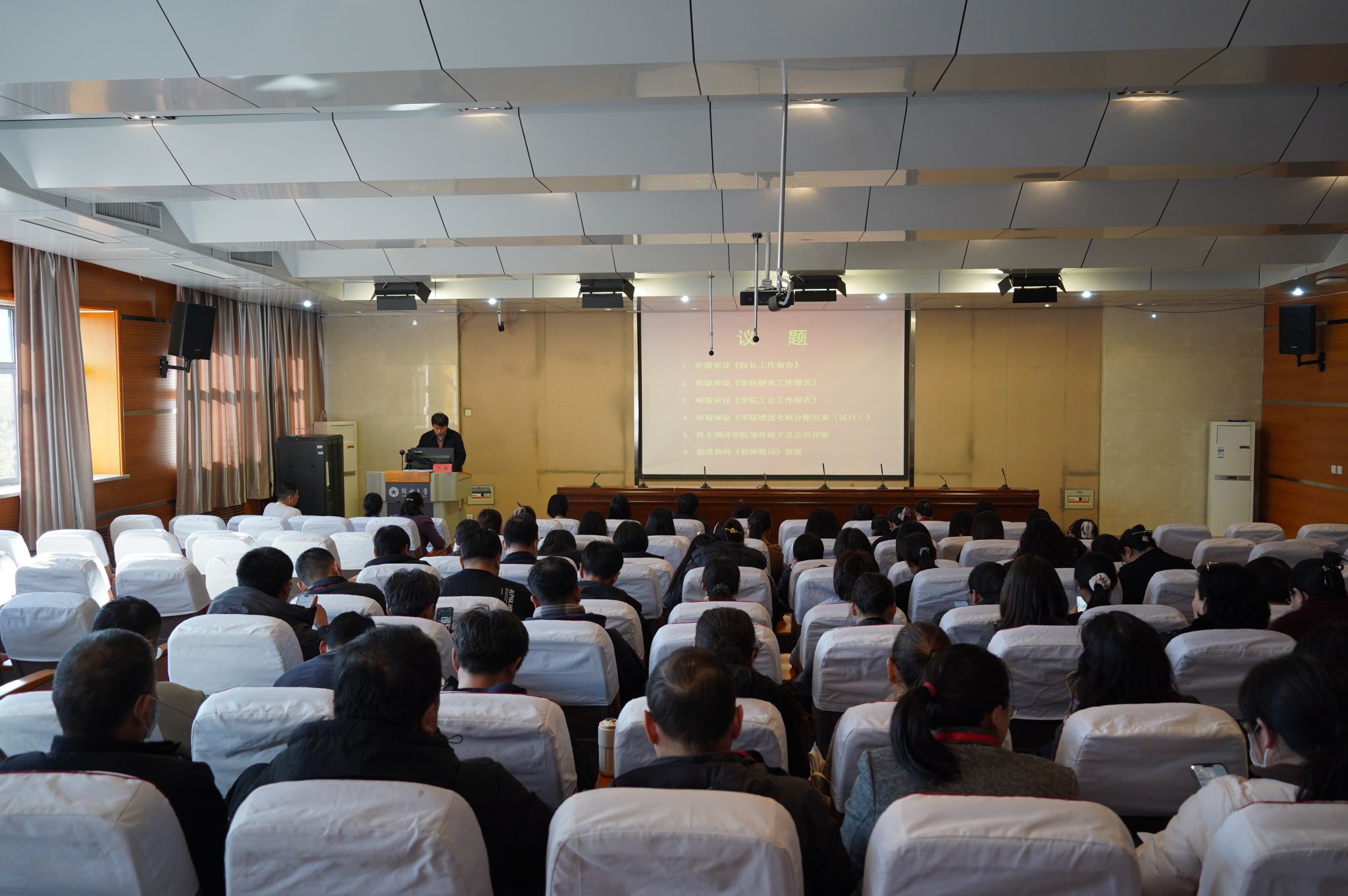 最后,学院党委书记刘鑫作总结讲话,代表学院党委提出五点要求:一是坚持党的全面领导,坚定把握正确的政治方向;二是充分发挥教职工大会作用,进一步提升民主管理水平;三是聚焦核心任务,进一步凝聚共识,激发高质量发展合力;四是更加关注教职工需求,建设更加温暖的工会之家;五是更好地参与学院管理,积极建言献策。