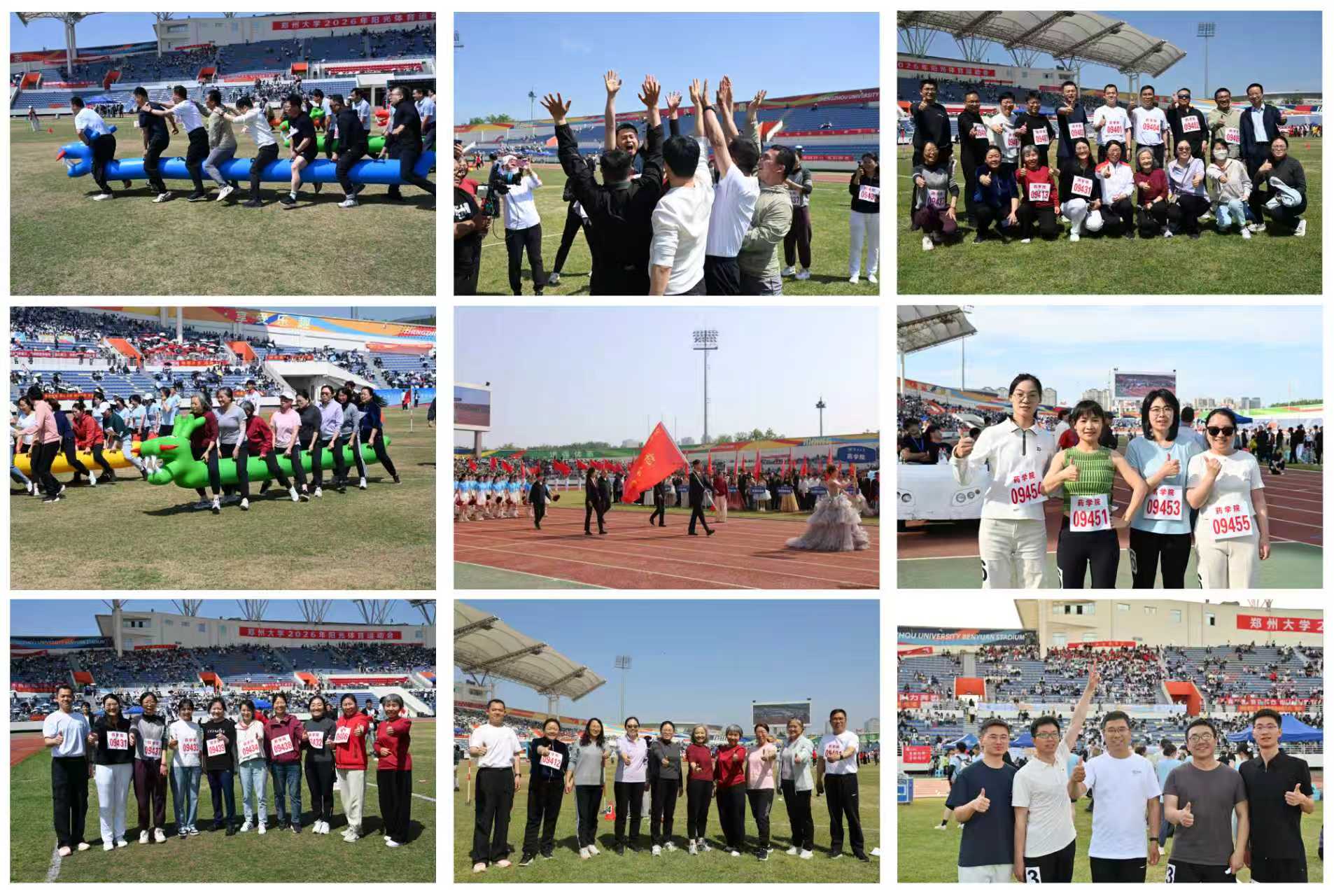 4月9日,郑州大学阳光体育运动会在中心体育场隆重开幕。药学院党委、行政高度重视,院工会广泛动员、认真组织、积极协调,教职工踊跃参与,与学生同场竞技,充分彰显了学院教职员工不仅在教学科研上精益求精,在体育赛场上同样敢于拼搏、勇创佳绩。