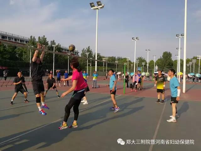 为了丰富学校教职工的业余生活,郑州大学校工会自5月15日起组织了为期两周的职工排球比赛。由来自全校各院系及附属医院机构的共27支队伍参加此次比赛。全部参赛队伍共分四小组,进行循环赛。我院以六战六捷D组第一的优异成绩出现,最终以八胜一负的好成绩,获得此次比赛的第三名。