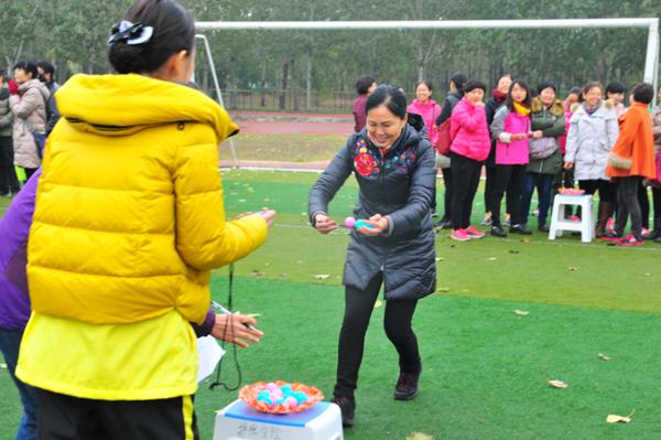个人项目由职工个人根据自身情况,自由参赛。在比赛沙包掷准和排球发准中,每人向目标投掷六次,其中一次为试投,五次为有效球。夹乒乓球,由一端夹球走向另一端放球,往返夹球,距离3米,时间50秒。教职工们赛完一项,立刻奔赴另一个赛场,大家都非常认真的对待每一项比赛,表情时而严肃认真、时而开怀大笑,流露着儿少的纯真。