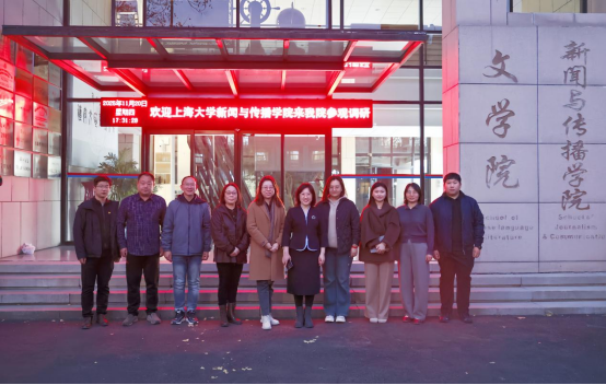 为进一步加强校际交流,探索学生工作的新思路、新方法,2025年11月20日下午,上海大学新闻与传播学院党委副书记、副院长王智君,学院院办主任汪友宝、学院校友工作、就业工作负责人彭红一行赴我院进行参观学习。我院党委书记陈晓伟,党委副书记、纪委书记王炯炜、团委书记鲁兴学、学工办主任高一哲以及各年级辅导员对来访嘉宾给予了热情接待,双方举行了座谈交流会。