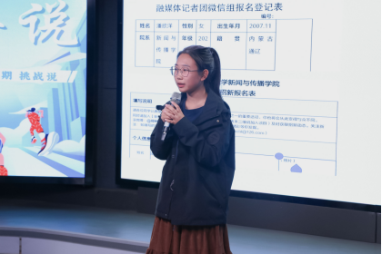 11月25日晚,我院在中核八楼演播厅成功举办“新传青年说”第九季第二期比赛,本期节目以“挑战说”为主题。柳园社区主任、党委学生工作部副部长、学生处副处长张朝阳,松园社区主任、党委学生工作部副部长、学生处副处长潘永建,新闻与传播学院党委副书记、纪委书记王炯炜,新闻与传播学院学工办主任高一哲,新闻与传播学院广电系教师李昕婕担任本次比赛评委。本次比赛由李明羲和张佳颖主持。