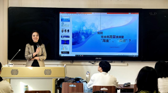 讲座伊始,董老师从日常现象切入,通过“在哪个平台刷视频”“参与过哪些流量话题讨论”等互动提问了解同学们对流量的看法,并引出讲座的主题——全民流量时代传统媒体如何开展融合报道。