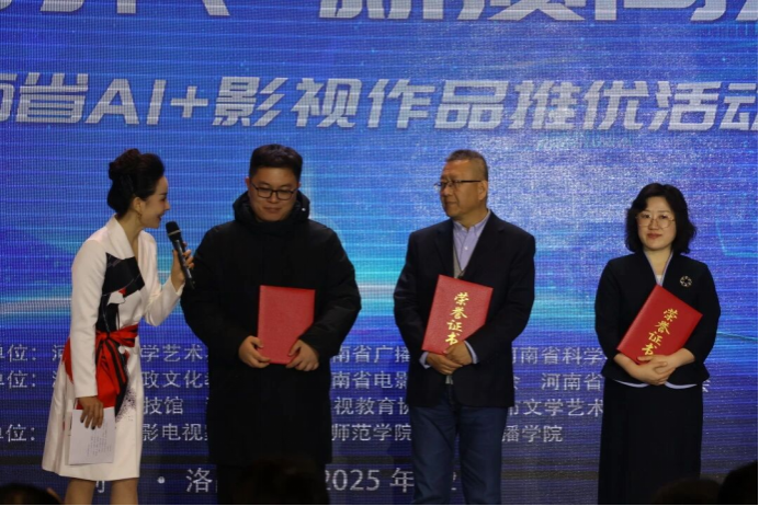 12月20日,“AI新时代·新质向未来”——河南省AI+影视作品推优盛典暨AI+洛绣艺术展在洛阳市上阳宫文化园举行。本次活动由河南省文学艺术界联合会、河南省广播电视局、河南省科学技术协会联合指导,河南省廉政文化教育中心等单位主办。自2025年5月启动征集以来,共征集作品367部,推选出优秀作品68部,其中一等奖作品13部、二等奖作品20部、三等奖作品35部。
