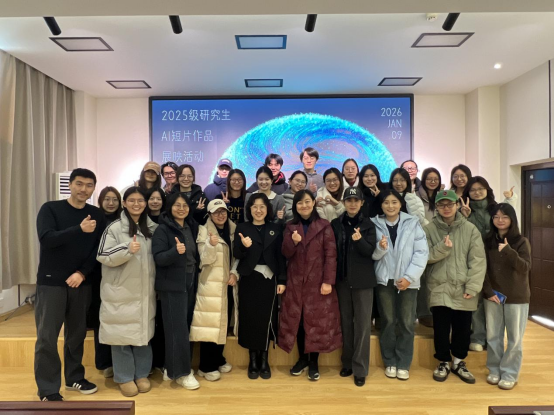 2026年1月9日上午,郑州大学新闻与传播学院“2025级研究生AI短片作品展映暨《AI短片创作》课程成果展”在学院415报告厅成功举办。本次活动集中展示了2025级戏剧与影视、新闻与传播专业硕士研究生共25部AI短片作品,这些作品以丰富的题材内容、多元的形式风格、精美的视觉画面展现了“AI+影像”的多元可能性。