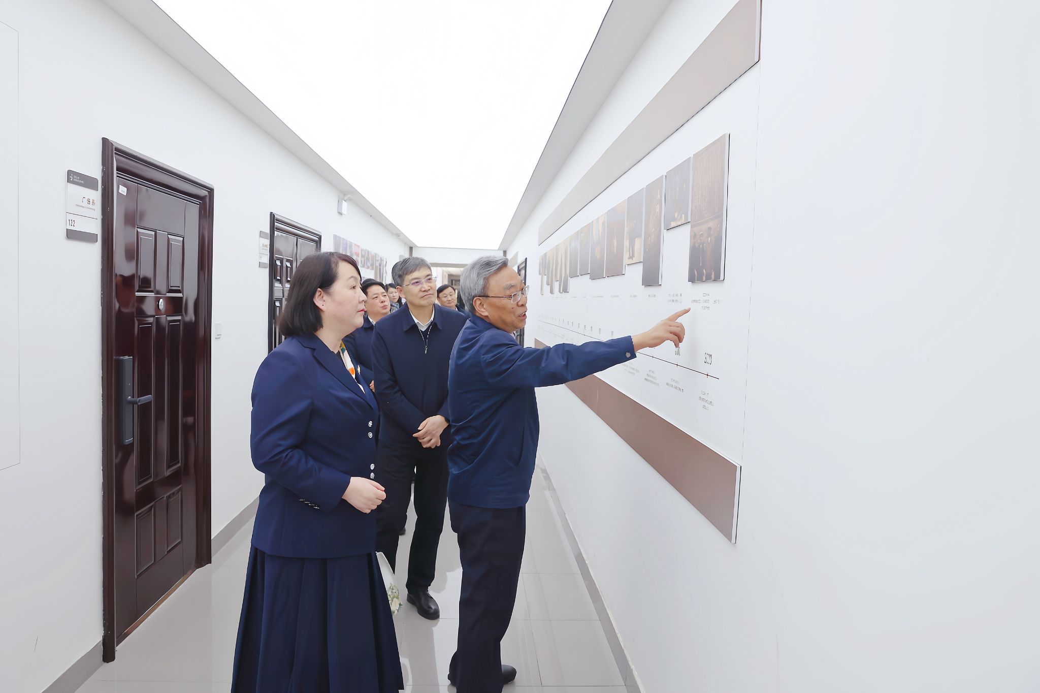 一进到学院,朱焕然副主席一行先了解了学院文化墙上展览的办学历史与新华社-郑州大学穆青研究中心的发展历程,并简要参观了穆青年谱展览与事迹。