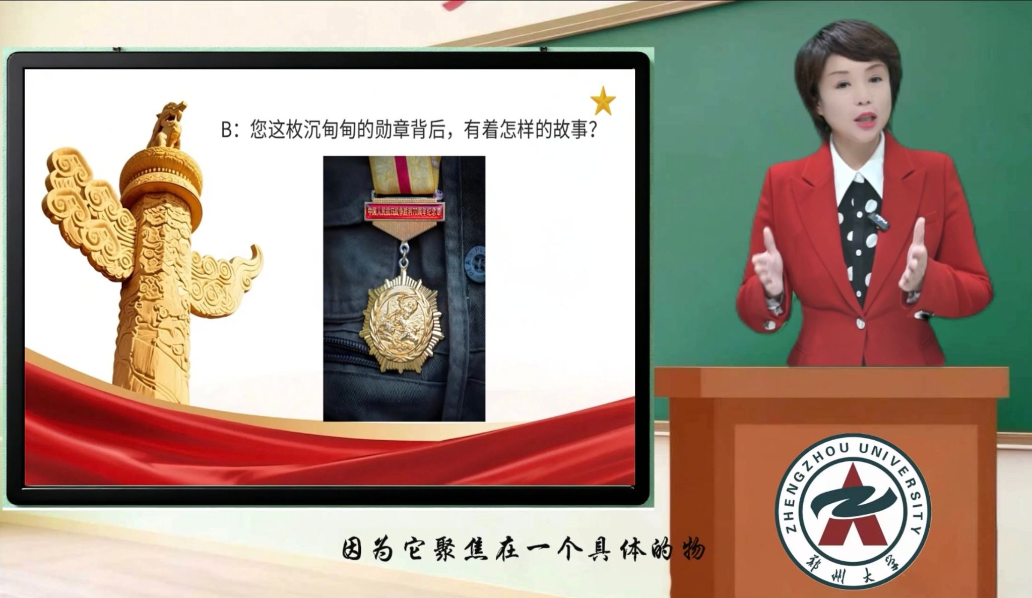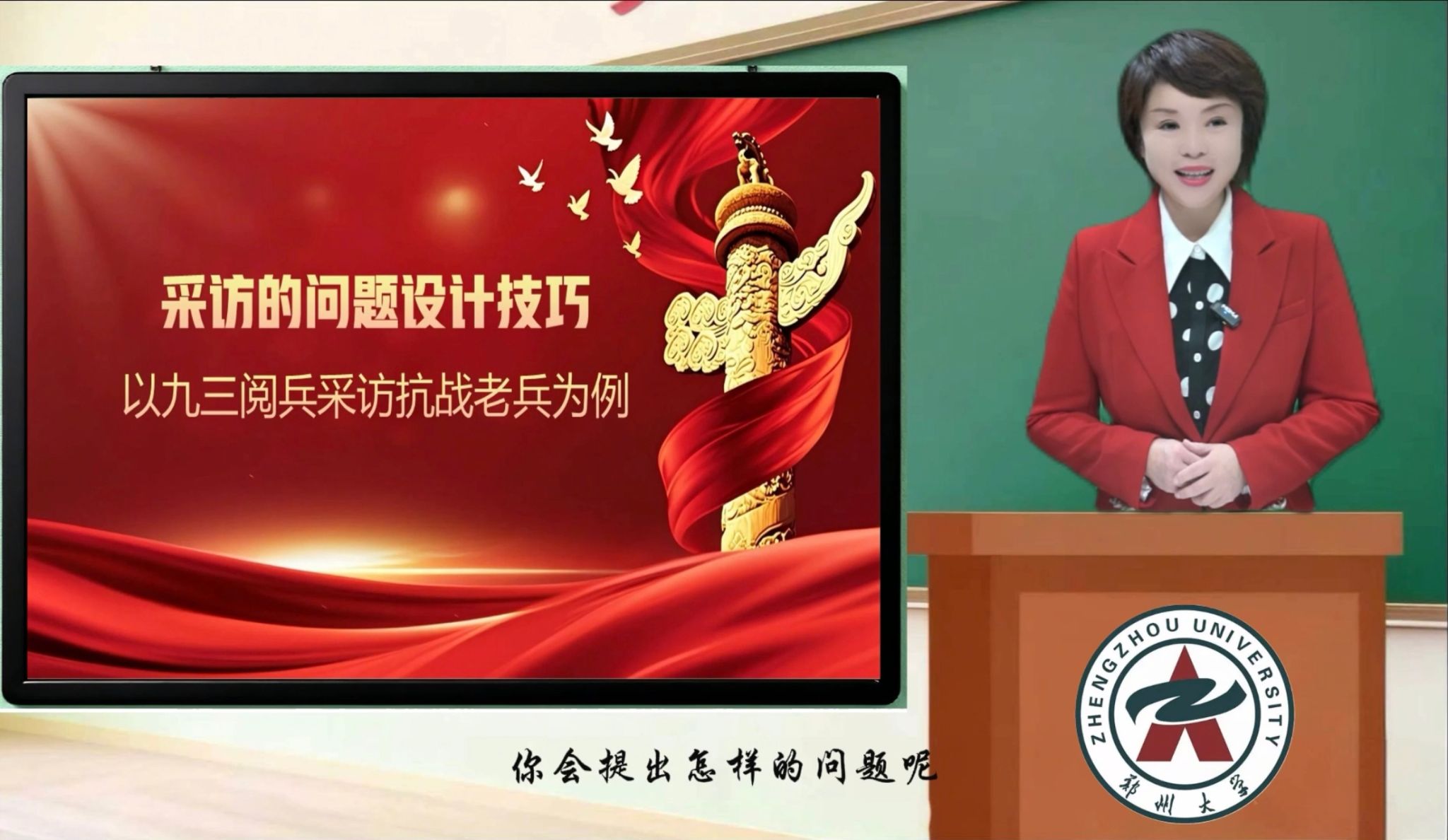 该获奖作品将新闻采访专业教学与爱国主义教育深度融合,以采访观看九三阅兵的抗战老兵为切入点,课程中王莹老师将采访问题设计拆解为三重递进层次:聚焦细节,让尘封的历史可感可知;共情引导,让受访者的情感自然流露;升华主题,让个人记忆与时代脉搏紧密相连。通过“细节、共情、升华”三个关键词,构筑起新闻采访中的人文温度,传递新闻工作者的时代担当与价值追求,实现了专业能力培养与思政教育的同频共振。