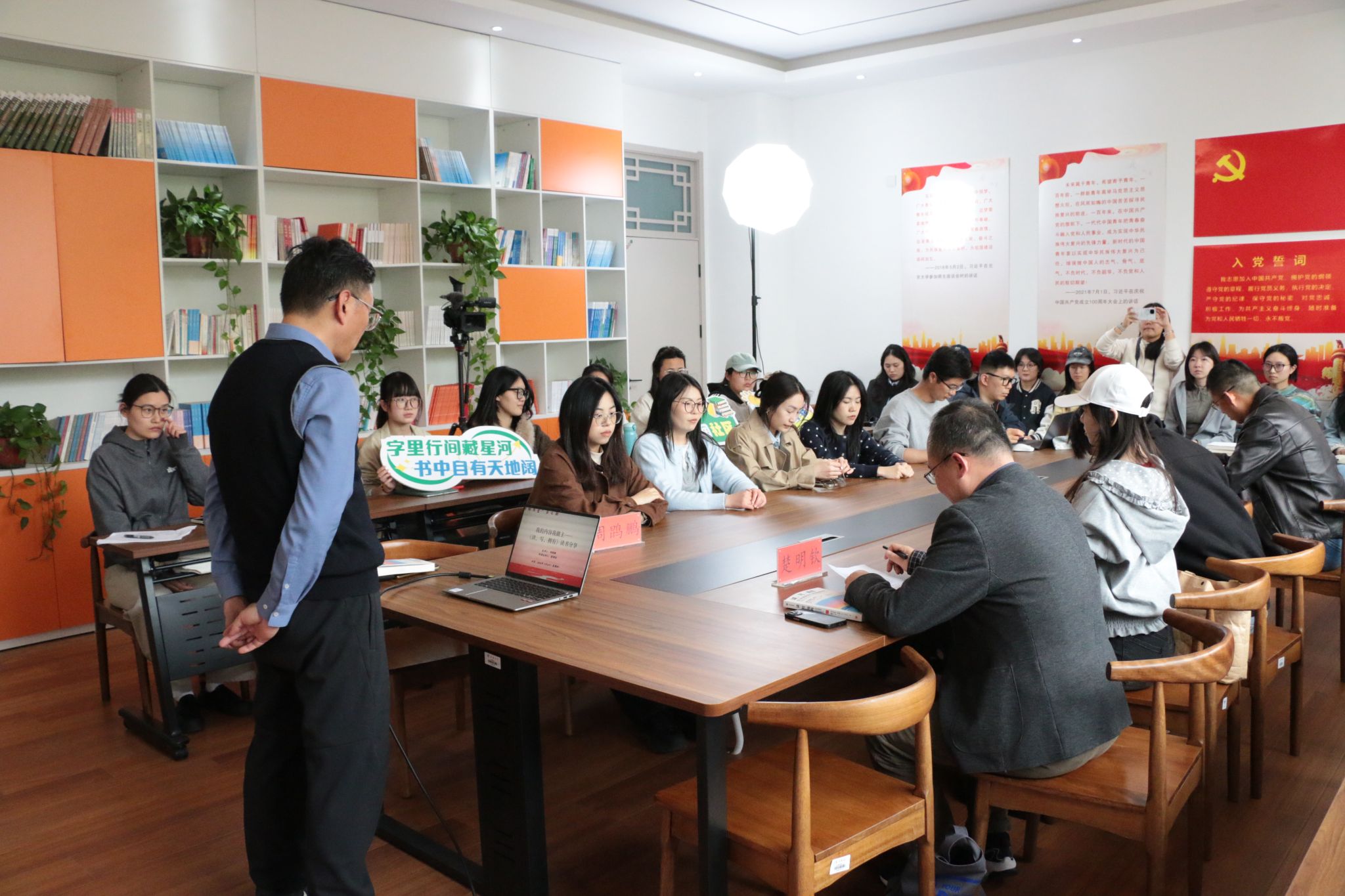 3月26日下午,由柳园社区主办、新闻与传播学院承办的“深柳书堂”第七期“我的内容我做主——《读,写,拥有》”读书分享活动在柳园社区党建活动室成功举办。柳园社区主任、党委学生工作部副部长、学生处副处长张朝阳出席,学院读书会相关负责老师和学生代表共同参加。郑州大学新闻与传播学院教授、博士生导师周鹍鹏主讲,郑州大学广告系党支部书记楚明钦主持。