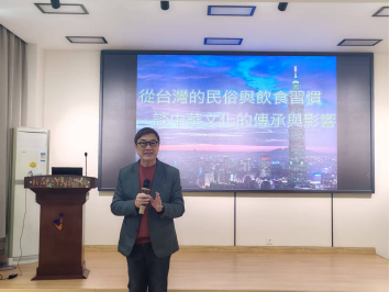 2025年10月24日下午,台湾世新大学副校长李功勤教授应邀在我院415报告厅作题为《从台湾的民俗与饮食习惯谈中华文化的传承与影响》的专题讲座。本次讲座由新闻与传播学院副院长邓元兵教授主持,2025级硕士研究生参加。