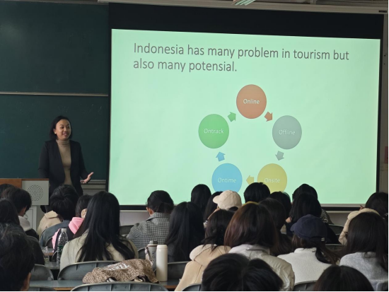 2025年11月3日上午,来自印度尼西亚University of Atma Jaya Yogyakarta的副教授Desideria Cempaka Wijaya Murti应邀在北核3507作关于数字旅游主义的讲座。讲座由我院郭晨老师主持。