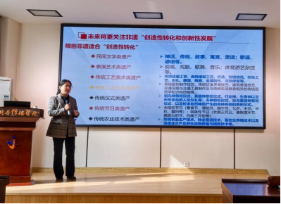 在讲座中,范教授结合多年研究经验,分享了其在裕固族非遗传承研究中的实践成果。通过问卷调研与深度访谈,她提出“多元行动者与文化传承动员网络”“网络社群凝聚与社会资本增益”等关键观点,指出网络社群在文化传承中的支持性作用。她强调,非遗的创造性转化与创新性发展是未来研究的重要方向。