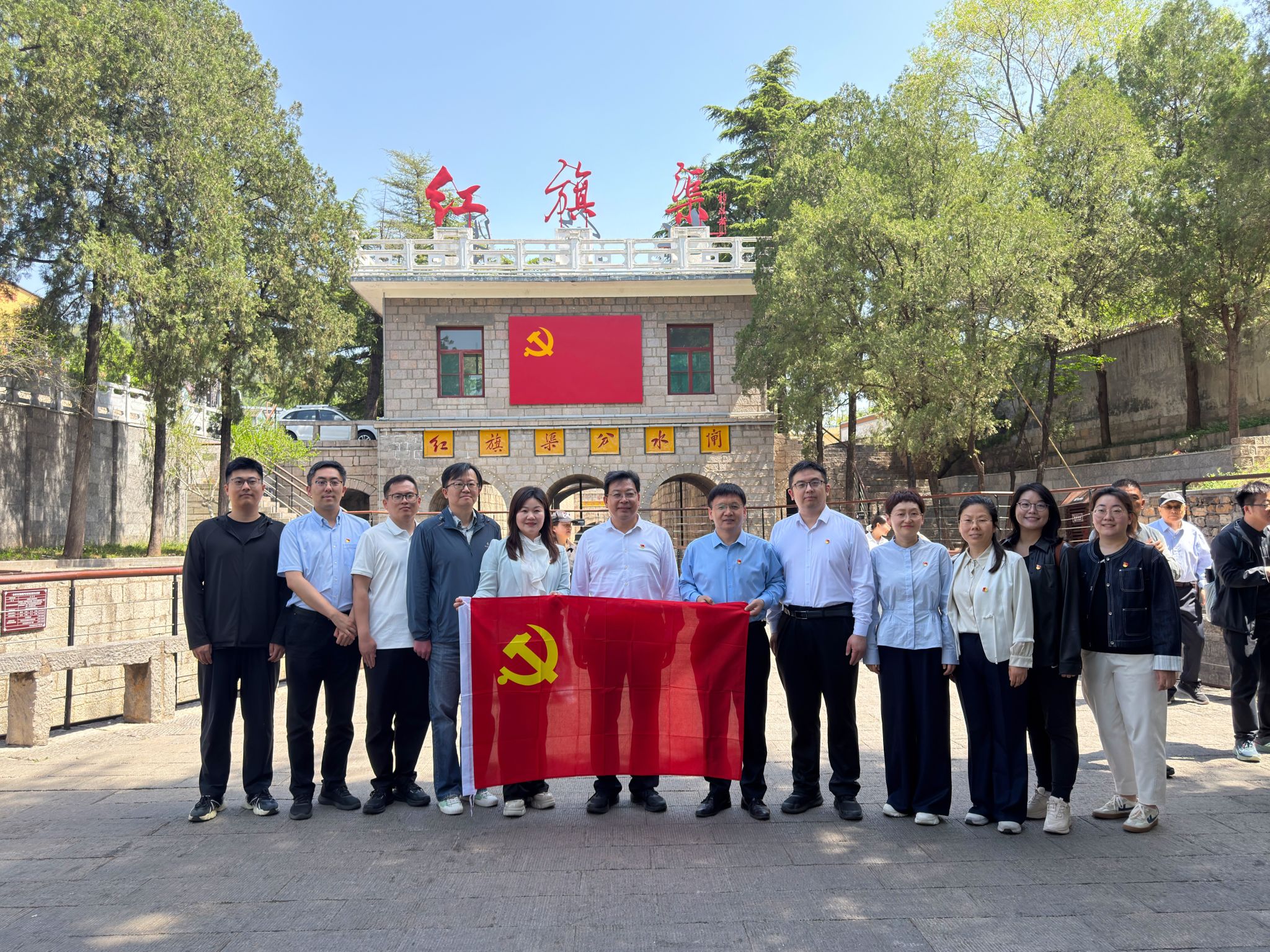 为深入学习贯彻习近平总书记关于树立和践行正确政绩观的重要论述,大力弘扬“自力更生、艰苦创业、团结协作、无私奉献”的红旗渠精神,强化党员党性修养,凝聚支部工作合力,4月18日,由校党委副书记王利国带队,党委宣传部、研究生院、学生处、校团委四个党支部联合赴红旗渠开展“传承和弘扬红旗渠精神、树立和践行正确政绩观”主题党日活动。