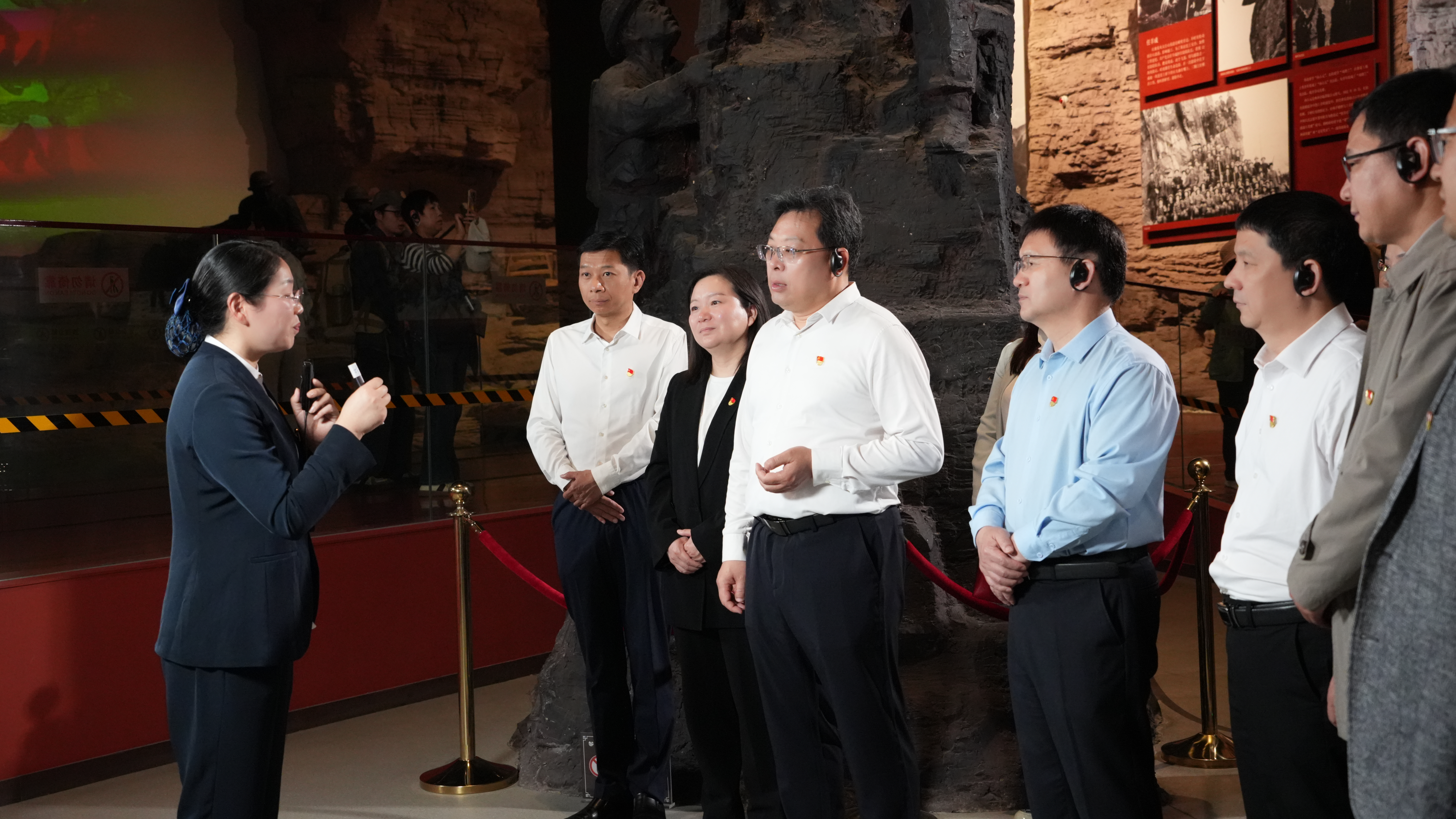 在红旗渠纪念馆,全体党员在讲解员带领下,认真观看历史图片、文献资料和实物展品,深刻感悟当年林县人民为改变缺水命运,在太行山悬崖峭壁上战天斗地、建成“人工天河”的英雄壮举,接受一场沉浸式红色教育。