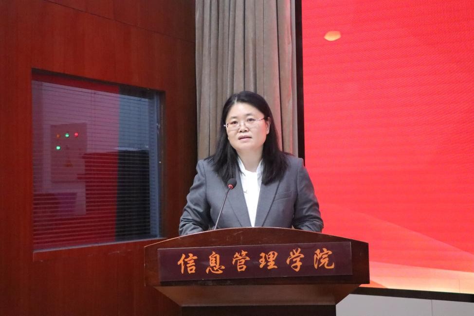 院长杨瑞仙教授以《在信息浪潮中锚定创新坐标》为题发表讲话。她代表学院向全体2025级新生表示热烈欢迎,向辛勤培育学生的家长和老师致以崇高敬意和衷心感谢。她指出,学校坚持以创新驱动高质量发展,以突破引领内涵式提升。信息管理学院,天生就是创新的前沿阵地,注重管技结合,也理应成为学校跨越发展的排头兵。在“十四五”收官和“十五五”开局的关键节点,恰逢学院四十年华诞,杨瑞仙院长围绕“创新”提出三点期望:一是创新源于“融通”,要做跨越边界的“桥梁搭建者”,本科生要跨学科学习,跳出专业局限;硕士生研究要注重问题导向,成为连接学科与产业的桥梁;博士生要立志进行范式创新,探索信息流动底层规律。二是创新成于“求实”,要做数据世界的“价值洞察者”,扎根真实需求,挖掘数据价值。三是创新贵于“人本”,要做有温度的“科技向善者”,秉持科技向善,关注伦理温度。最后,她希望同学们继承“务实求新”的优良传统,以“后浪奔涌”的朝气,稳稳接过时代的创新接力棒。