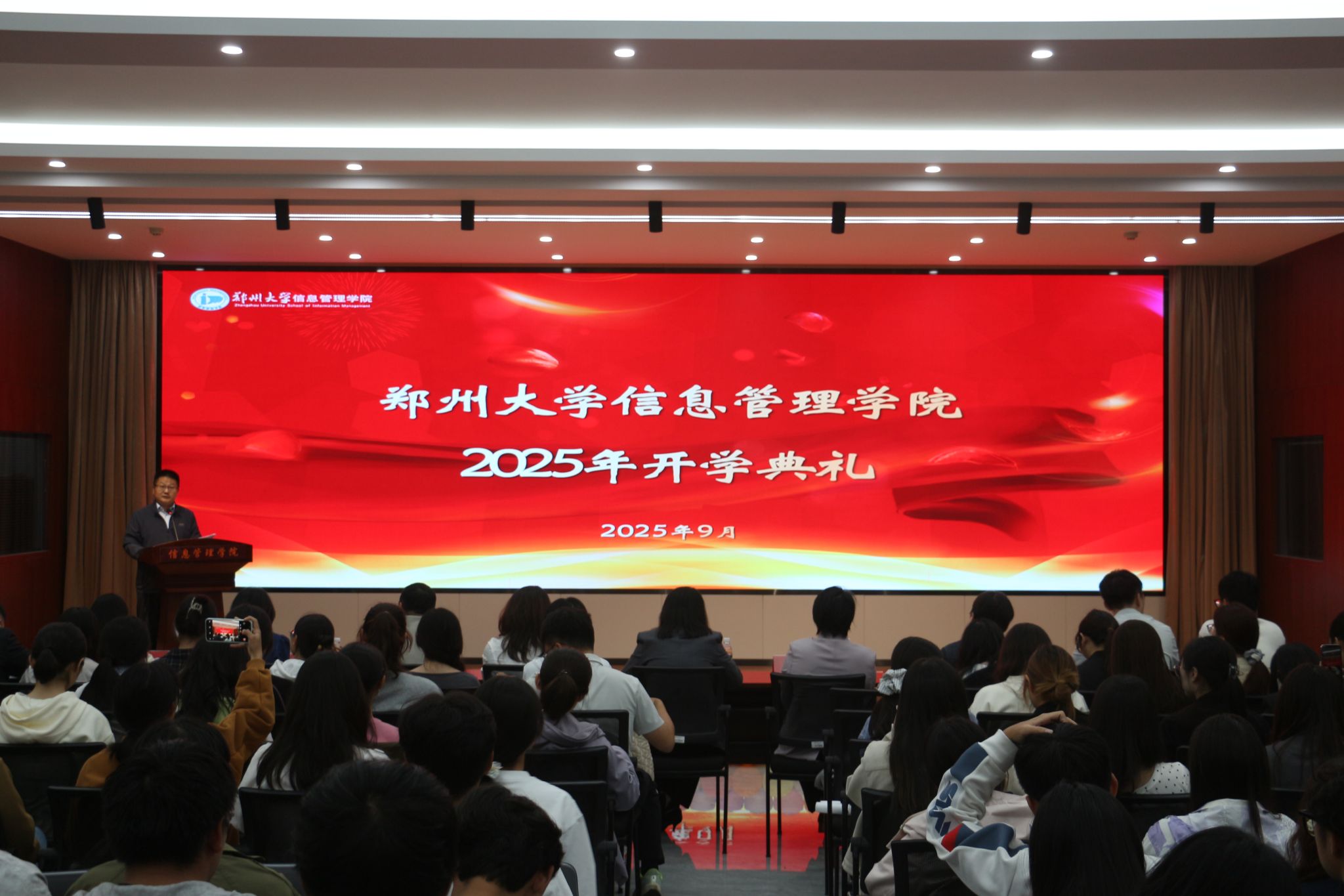 金秋九月,丹桂飘香。9月28日,郑州大学信息管理学院举行2025级新生开学典礼。院领导班子全体成员出席典礼,各专业系主任、新生班主任、辅导员及全体2025级本硕博新生共同参加典礼。院党委副书记刘东楠主持。