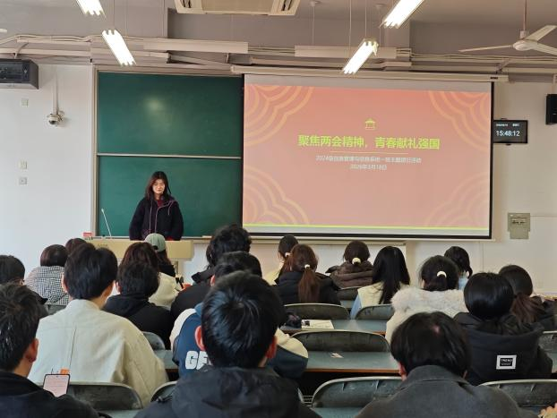 3月14日,2024级信息管理与信息系统一班团支部在主校区北核心教学区3110教室举办“聚焦两会精神,青春献礼强国”主题团日活动。活动中,团支书带领团员系统学习了国家在经济发展、科技创新、民生改善等重点领域的战略部署;随后组织两会精神主题分享会,引导团员结合专业知识交流学习心得;最后围绕两会意义与战略任务开展专题宣讲,并带领全体团员重温入团誓词。此次活动进一步激发了团员青年服务强国伟业的决心,增强了社会责任感与历史使命感。