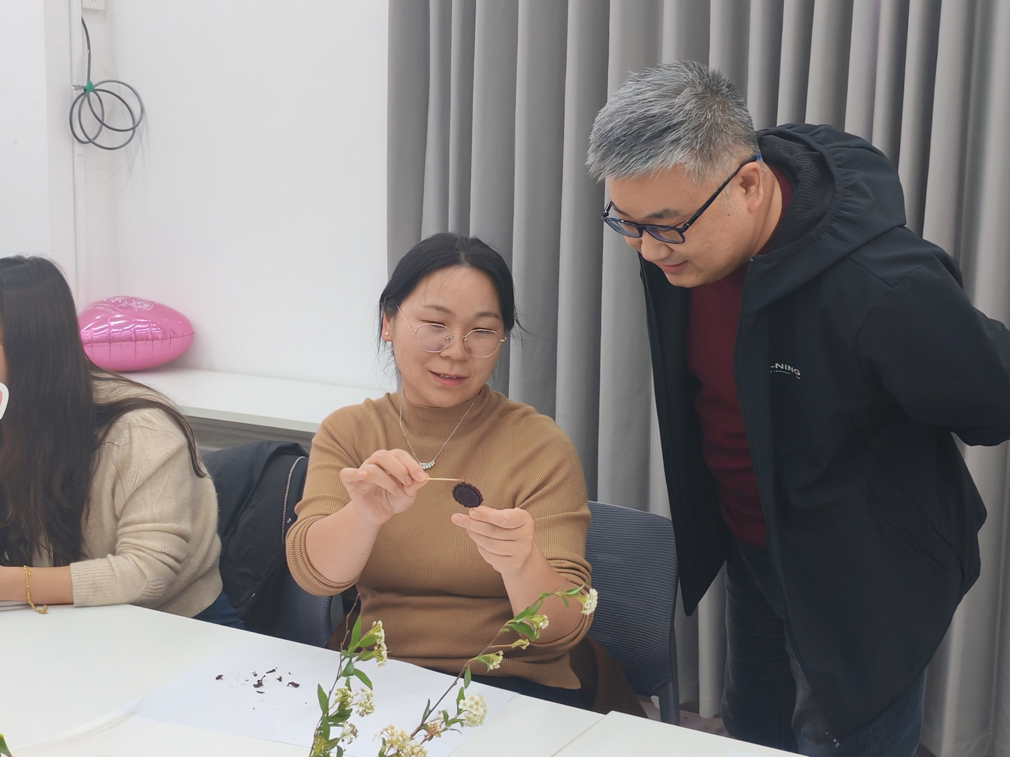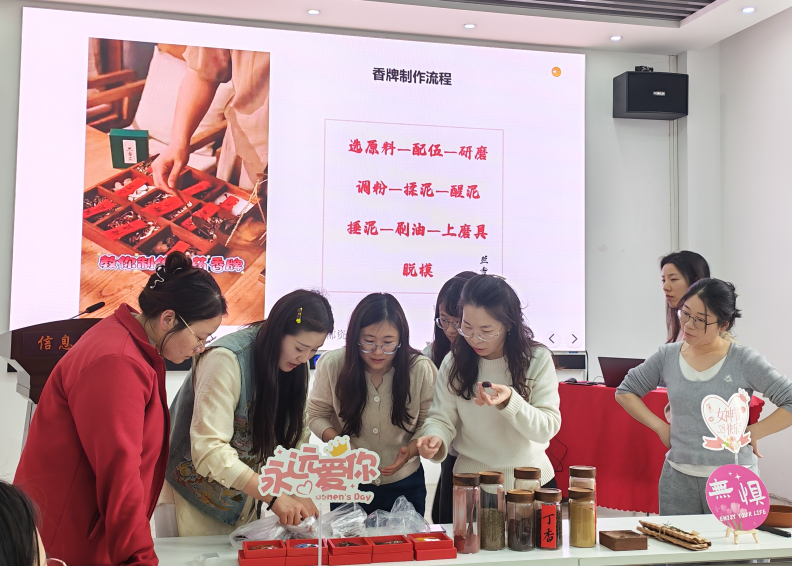 在老师们专注制作的过程中,学院党委书记许立敏、工会主席郎春林来到活动现场亲切慰问。许书记与女教职工亲切交流,询问大家的工作生活情况,并对大家在教学科研、管理服务等岗位上的辛勤付出表示感谢。许书记表示,学院党委将一如既往地关心支持女工工作,为女教职工的发展创造更好条件。他们的到来让现场气氛更加温馨热烈,大家纷纷展示自己制作的香牌,分享手作心得。