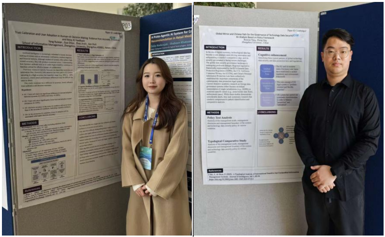 ICIM是信息管理领域的国际学术会议。本次会议以“数字时代的信息管理创新与社会发展”为核心主题,聚焦信息治理、数字素养、知识服务、人工智能应用等前沿方向,旨在为全球信息领域专家学者搭建交流平台,集中展示信息管理及相关学科的最新研究成果,促进学术思想碰撞与国际合作。我院2024级博士生郭诗语、2025级博士生荆诤参加本次会议并做海报展示与交流。此外,我院2024级硕士研究生张汉卿、李星月线上参加ICIM2026会议并进行论文报告。
