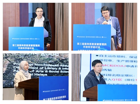 主题报告环节,中国科学院文献情报中心主任刘细文围绕“开放科学政策议题与科研评价改革方向”、武汉大学图书馆副馆长黄如花围绕“AI重塑开放出版背景下的图书馆作为”、深圳国家高技术产业创新中心大数据平台与信息部部长卢春江围绕“关于创新情报行业可信数据空间建设和运营的初步思考”、华中师范大学信息管理学院教授段尧清围绕“我国政府开放数据利用的区城差异与演化研究”、国家天文科学数据中心(中国科学院国家天文台)主任崔辰州围绕“开放的星空与天文资源的开放式管理共享”、中国科学技术大学教授/中国科大计算社会科学与融媒体研究所所长褚建勋围绕“面向AI时代的开放科学与学术发表革命”、马来亚大学图书馆与信息科学系主任A. Noorhidawati围绕“Diamond Open Access: Equity-Driven Publishing”、北京中科期刊出版有限公司期刊运营部学术经理侯修洲围绕“SciEngine平台开放获取出版实践与中国开放获取期刊数据库(COAJ)进展”分别作主题报告。南京大学信息管理学院教授朱庆华、中国农科院农业信息研究所副所长赵瑞雪、中国医学科学院医学信息研究所医学信息资源与知识服务中心主任任慧玲、中国科学院文献情报中心研究馆员黄金霞分别主持以上报告。