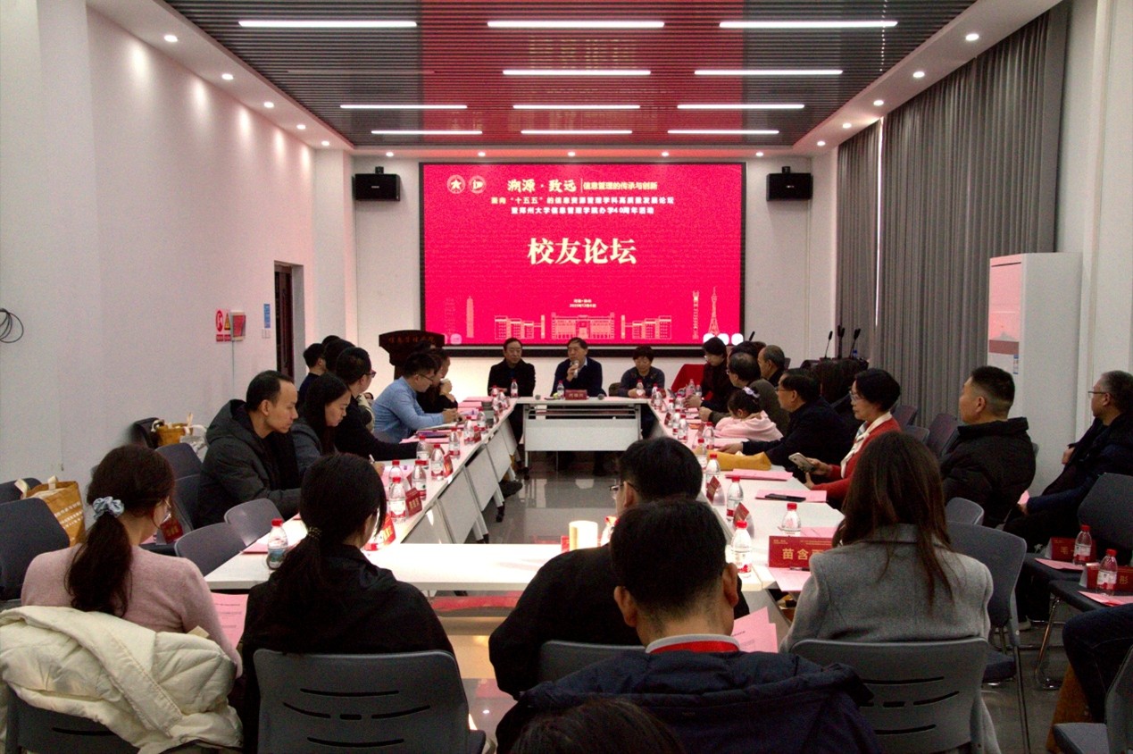“校友力量与学院发展联动机制”校友论坛由中国大学出版社协会代根兴、郑州大学王平召集,来自政府、企业、高校的杰出校友积极建言,就共建实践教学基地、设立行业导师制度、推动发展基金建设等提出切实可行的合作路径,生动诠释了“信管人”饮水思源、反哺母校的责任担当。