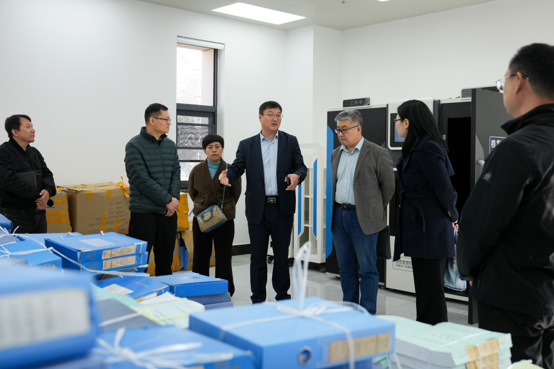 在张广坤等陪同下,调研组一行先后参观了档案馆中央控制室、工艺流程室、消杀室、科技档案库房、实物档案库房及人事档案库房,详细了解企业在档案管理、数智化建设及安全保障等方面的先进做法。